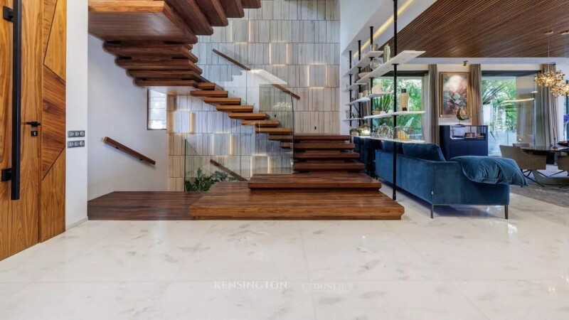Exceptional villa enjoying a clear view of the golf course, with a constructed area of 1180m2 on 3 levels. The villa includes a heated basement swimming pool of 10m x 3m with heat pump and a swimming pool on the ground floor of 14m x 3.5m, a beldi hammam and a relaxation room, a open-air CrossFit room and a guest bedroom. the villa includes on the ground floor a large living room with a double lounge, a Moroccan living room in zellige fassi, a dining area, a terrace with its infinity pool and Bali stone covering. The upper floor has 4 bedrooms including a large master suite with dressing room and jacuzzi overlooking the golf course. the villa is equipped with central underfloor heating, a preparation kitchen on the ground floor, a main kitchen in the basement, central air conditioning, home automation in terms of lighting, roller shutters and sound system , 50 photovoltaic panels, an elevator going from the basement to the terrace. The villa can be sold furnished.