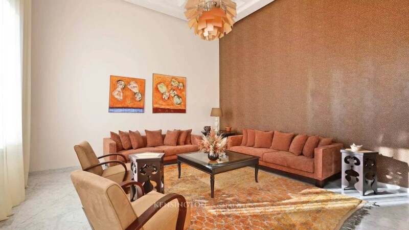 Villa Colibry is a rare gem located in the prestigious Bab Atlas district. With its majestic architecture and lush exterior, the villa offers comfort, calm, luxury, security and privacy with only one main entry to the property. Villa Colibry consists of a main house and a separate ready-to-use pavilion. Built on three levels, the main house is distinguished by its impressive volumes and High ceilings, while the pavilion consists of a gym, a traditional hammam and a bathroom with toilet and shower. On the ground floor of this splendid mansion, you will be charmed by an Art Deco style entrance hall giving access to the day spaces on one side and the night spaces on the other, highlighted by a small salon. On entering the villa, the reception area is separated into 2 living rooms, one with a fireplace and built-in baffles in the ceiling, giving access to a furnished terrace and therefore to the garden, and a dining room with its own fireplace, also giving access to a second terrace with a cosy double lounge and an outdoor fireplace to enjoy the winter season. Still on the ground floor, the equipped kitchen with its pantry and office will accommodate your most lavish feasts. The kitchen opens onto a courtyard and gives access to the basement space dedicated to the staff and consists of 2 bedrooms with air conditioning, a bathroom with shower and toilet, the laundry room and a technical room. The property also has a caretaker's house with kitchenette and shower room. Villa Colibry has 5 magnificent and unique suites with private bathrooms, 2 of which have a dressing room and 3 of which have a wall or a section of wall in cupboards. Three of them are on the ground floor and have a private terrace with access to the garden. The first floor is dedicated to the remaining 2 suites. In the outdoors, young and old alike can enjoy the sunny days of Marrakech thanks to a solarium, and two swimming pools with different profound (approximatively 300 m3), for children and adults. For more information, please do not hesitate to contact us.