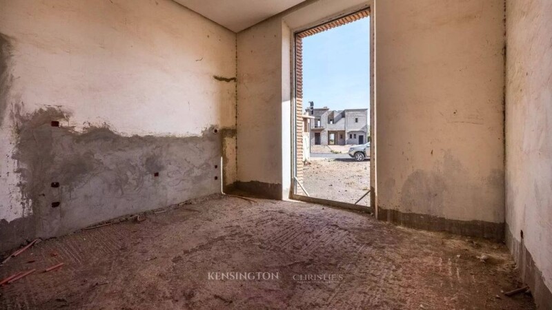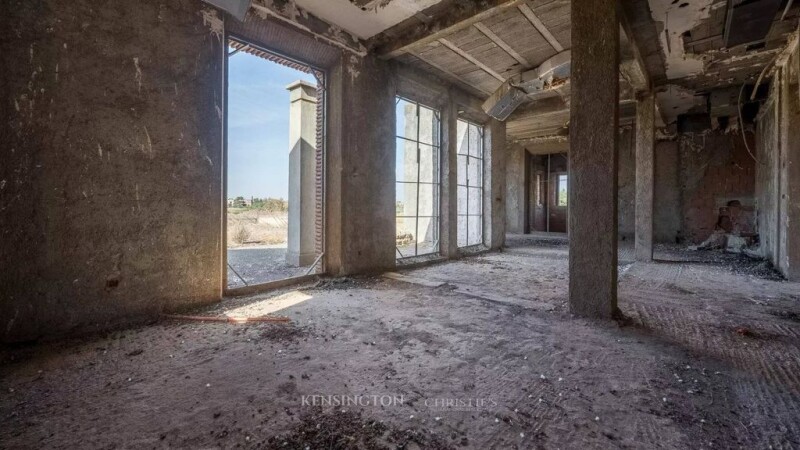 Villa in Shell Form for Sale Through the Purchase of a Reservation Contract Held by a Moroccan Company This villa in shell form offers an unobstructed view of the golf course. It includes 3 bedrooms, each with an en-suite bathroom, a spacious living room and lounge, a kitchen, a staff room, several terraces, and a larger-than-average swimming pool compared to others in the residence.
