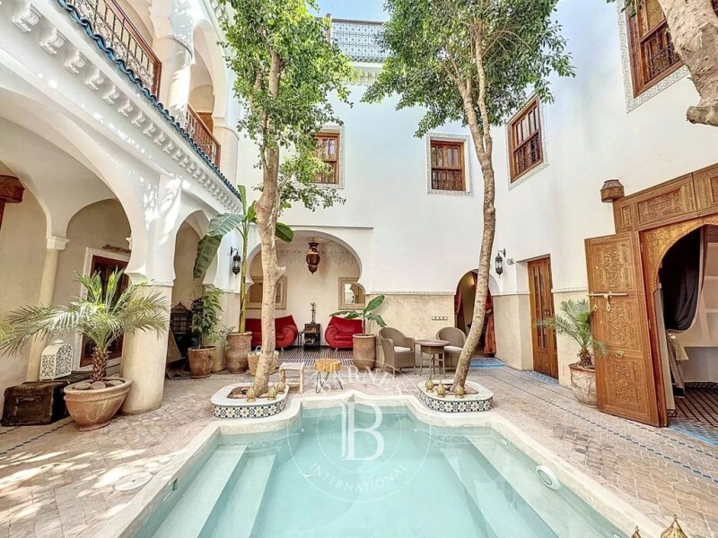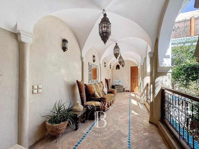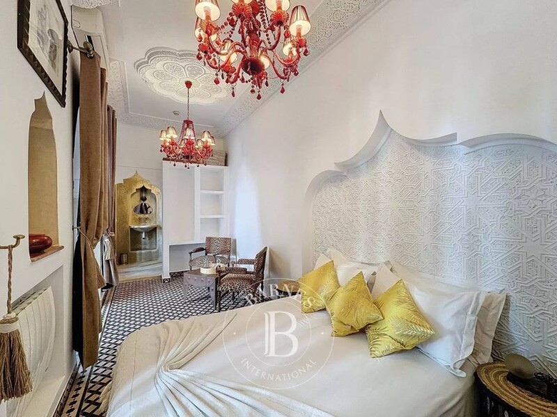 Superb Riad "Authorized Guesthouse" for Sale in Bab Doukkala, Marrakech This architectural gem is located in one of the best neighborhoods of the Medina, Bab Doukkala, offering an exceptional location with easy access to a nearby parking area. Key Features: Ground Floor Area: 184 m² with spacious, well-designed rooms. 6 Magnificent Suites: Luxurious finishes, each suite offering a perfect blend of comfort and style. Generous Spaces & Volumes: The riad’s layout is ideal for both a guesthouse or a family home, with large, welcoming spaces that create an atmosphere of tranquility and comfort. Fully Furnished & Equipped: Ready to welcome guests or residents immediately. The furniture and tapestries have been carefully selected to combine traditional charm with modern comfort. Layout: Ground Floor: Reception Area: Featuring a boutique space, perfect for showcasing Moroccan crafts. Stunning Patio: A bright, open space with a central fountain surrounded by lush ficus, offering a serene and charming ambiance. Fully Equipped Kitchen: Rarely found in traditional riads, this kitchen is perfect for preparing meals. Laundry Area: Including washer and dryer facilities. Bhou (Moroccan Sitting Area): A cozy, intimate space for relaxing. Two Bedrooms with En-suite Bathrooms. Guest Toilet. Storage Area: With beautiful built-in closets for easy organization. First Floor: 4 Beautiful Suites with En-suite Bathrooms: Each suite offering a luxurious space for relaxation and comfort. Rooftop: Large Terrace: Multiple areas to relax and enjoy the stunning views of the Medina. A perfect space to soak up the sun or entertain guests. Outdoor Kitchen: Ideal for cooking and dining outdoors. Pergola Lounge & Dining Area: A shaded area for al fresco dining. Solarium Space: To enjoy the sun throughout the day. Shower & Jacuzzi: For ultimate relaxation. Ideal For: Investors: This authorized guesthouse is an incredible opportunity for those seeking to invest in the thriving Marrakech tourism market. Architecture Enthusiasts: The riad offers a unique blend of traditional Moroccan design and modern comforts, ideal for those who appreciate the charm of Moroccan heritage. This riad is a rare find and offers the opportunity to own a truly exceptional property in the heart of the Medina. Contact us today for more information and to arrange a viewing!.