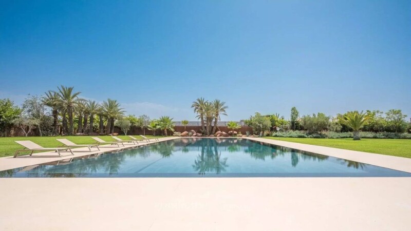 Villa Yazos, a luxury property offers an idyllic setting. As soon as you enter, you will be seduced by the spacious and bright double living room, ideal for moments of relaxation or reception. The elegantly furnished dining room invites you to share delicious meals with family or friends. A private office is also at your disposal to work in complete peace and quiet. Villa Yazos includes a sumptuous master bedroom with its own private Hammam, for moments of absolute relaxation. In addition to this master suite, four other suites, all equipped with private bathrooms and toilets, offer unparalleled comfort to each guest. For your leisure, a private cinema room awaits you for film sessions in complete privacy. Children can have fun in a dedicated play area, while sports enthusiasts will enjoy the padel and tennis courts. The exterior is just as impressive, with a very large garden where you can relax or organize outdoor activities.