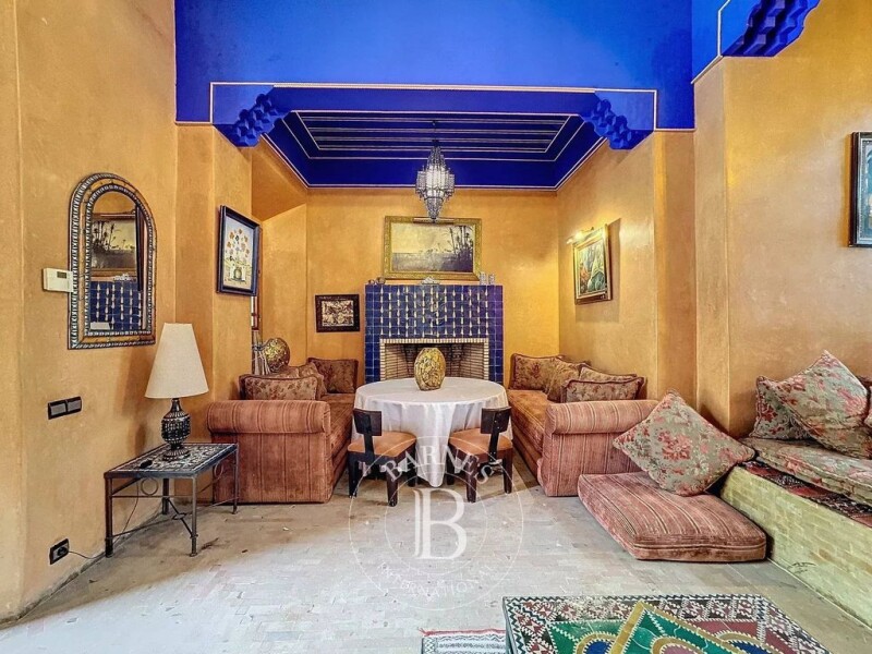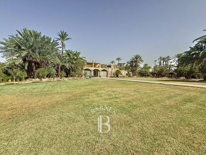 Exceptional Property for Sale in the Palmeraie – 10 Bedrooms and 8 Bathrooms This stunning property, set on a vast 20,000 m² plot, is a true oasis of tranquility. The spacious pool offers breathtaking views of the Atlas Mountains, adding to the allure of this magnificent space. Designed by the renowned architect Élie Mouyal, this villa showcases a unique Kasbah-style architecture that blends traditional charm with modern elegance. The use of materials like bricks and tadelakt, alongside contemporary lines, creates a distinctive and harmonious design. The property boasts several balconies and terraces, perfect for enjoying the scenic views of the garden, pool, and mountains. With amenities including air conditioning, heating, a fireplace, an office, and a cozy sitting area, this villa ensures maximum comfort and luxury. This is an ideal retreat for those seeking both opulence and peace in one of Marrakech's most coveted locations.