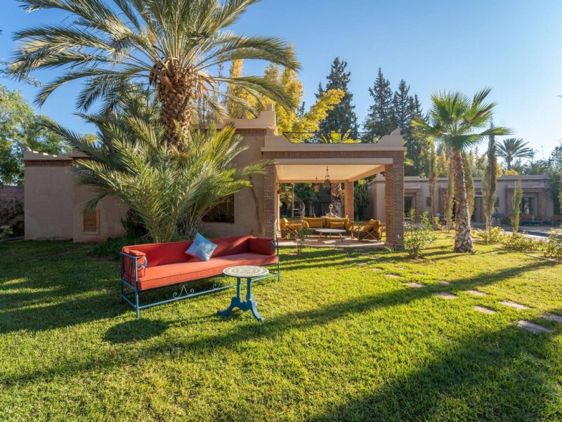In the Palmeraie, less than 15 minutes from the city center, t his villa of ± 1.600 m² is built in a Middle Eastern style in the heart of a park of ± 10.000 m². The villa is comprised of ten suites in total (five in the main house, and five in the exterior pavilions) each with their own bathroom, toilets, and dressing room, as well as numerous indoor and outdoor living spaces such as a large reception pergola style, a patio, living rooms and dining rooms on a shaded terrace in the garden, a bedouin tent. Its future inhabitants will also benefit from many places of relaxation and well-being. All the villa furniture is from eastern countries such as Egypt, Iran, Lebanon, Turkey, Syria, and India (from 11 different countries). Its much sought-after furnishings make it a villa that stands out from the other properties. Regarding the staff, it has five service rooms, and the house has two entrances from the street. others: spa, hammam, sauna, jacuzzi, rest and massage room. The Palmeraie is one of the most popular areas in Marrakech. It covers more than 13,000 hectares and has more than 150,000 palm trees. It is a true oasis of calm and luxuriance at the gates of the city. For more information, please contact Franck LE PECULIER on +212 6 63 15 92 44.