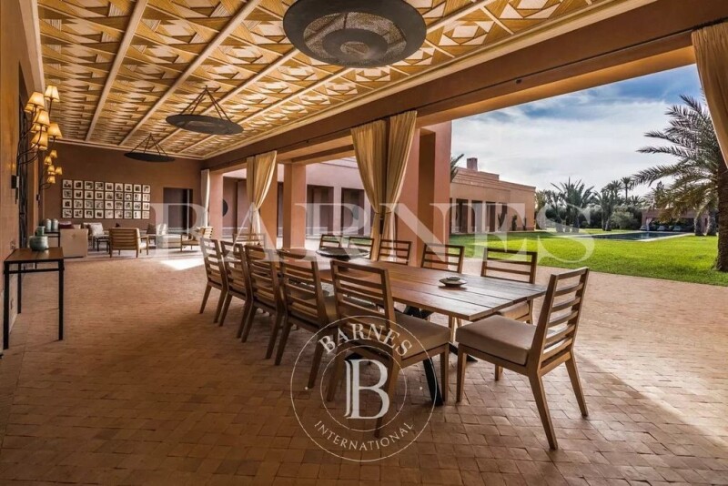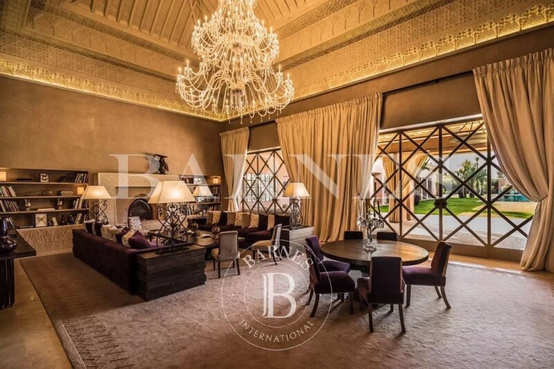 Located in the most prestigious and private domain in all of Morocco, this incredible villa provides unparalleled amenities o n a scale that truly makes it a private palace. The private gated and walled property, in which the estate is located, is accesse d through a 1200 meter long road and in addition, the estate has its own gate & walls, providing an additional layer of securit y. The gently undulating road leading from the private gate to the main courtyard is decorated with alley provides glimpses of parts of the overall estate before finally arriving at the main court of entrance. The grounds encompass hills overlooking th e garden and villa, lounge house for afternoon tea. There are extensive rose gardens, vegetable gardens and hundreds of olive trees and palm trees, clay tennis court and romantic walk ways around the property. The main house was born out of a vision to create a spectacular masterpiece exceeding the demands of today’s discerning living, while reflection the true essence of Moroccan architecture. The monumental entrance and all decorations are testimony of the local craftsmanship as well as materials and techniques used as the traditional cedar wood, chiselled metal and sculpt ed plaster finest work. The use of light, materials and colours are just elegant and breath taking. The interior has been carefully selected by the famous owner with the most extraordinary and exclusive materials, fabrics, furniture, art decoration of the finest. The main house has five independently designed main bedroom suits (100 300m2) each with a private garden for privacy some with a private pool, a huge marbled bathroom and fire place. The main living room with 8m high ceiling is a master piece , with a cosy separated finest library, a formal dining room with a wine cellar. The exterior salon is covered and designed wit h the most finest outdoor furniture and offers a lounge corner with a fire place and dining table for 18 guests. The 36 meters swimming pool to swim south against the snow covered Atlas mountains, designed with a relaxing pool house with all comfort and own kitchen. The self contained event place is designed in contemporary style and offers all for lounge, bar, party, cinema like a private club, a dining room with seating for many guests. The estate is also equipped with a private hammam, a gym, separate bathrooms and changing cabins, with a relaxing salon and a fire place, with an equipped massage room inside and an outside massage pavillon with private garden decorated with water fountain and a tennis court. The estate has also a hugh modern and fully equipped kitchen. This estate is designed and built to a royal specification and offers a unique opportunity to acquire an unparalleled property in Morocco on the highest lev el of quality. LOCATION & DESCRIPTION Property location: Domaine BAB ATLAS, Palmeraie , 40000 Marrakech, Morocco (25mn from Menara Airport, 10mn from Medina Marrakech) Property size: 14'000 m2 Total surface villa : 2’900 m2 Number of rooms: 5 bedroom suits (120 300m2), with private garden/ pool Personal rooms: 4 double rooms with bathrooms 2 bedrooms apartment for security staff Infrastructure: The villa is equipped with a full service area accessed by a separate service court, four double rooms for personnel, one apartment for the house gouvernante , one apartment for the guardian, gouvernante office, garages etc. Leisure & Facilities: Tennis court, gym, hammam, massage in and outdoor, yoga, pool house with barbecue corner, garden pavillon , library, cinema, disco and bar and more. The most beautiful and exclusive Golf courts are only 10mn drive from the property Staff & Services: Chef Cook, Gouvernante , Room Maids, Personal Trainer, Massage/Therapist, and Driver.