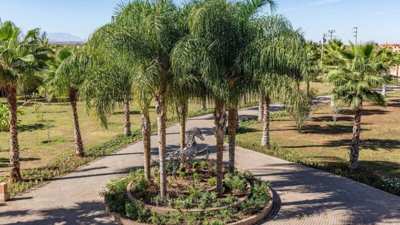 Located off the road to Ourika, 20 minutes south of Marrakech city centre, Villa Shah was recently built on a 2 hectare plot. It is a wonderful modern and contemporary mansion featuring very high ceilings with wide sliding doors flooding every room with tons of natural light. A massive L shaped swimming pool, a traditional Moroccan lounge with fireplace on the roof terrace, a hammam, a very generous master suite and 3 further spacious bedrooms with hen suite bathrooms (easily possible to add more bedrooms if needed), 2 kitchens and a stunning living area on the ground floor surrounded by the swimming pool make up the rest of this property. The sliding door from the TV/library on the ground floor enables one to dive directly in the water. Finally the well maintained garden and the panoramic views of the Atlas Mountains, are other assets to add to the already long list of qualities belonging to this property.