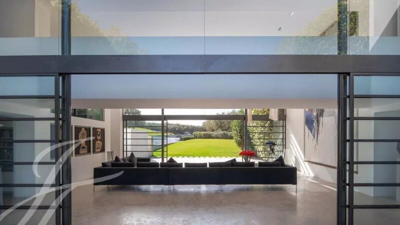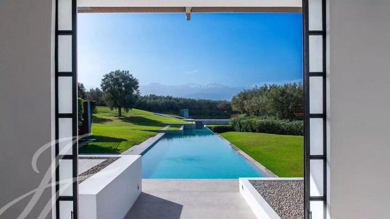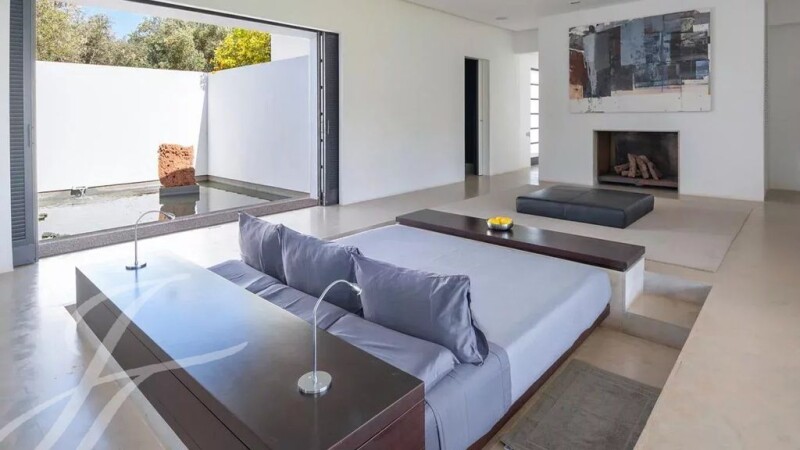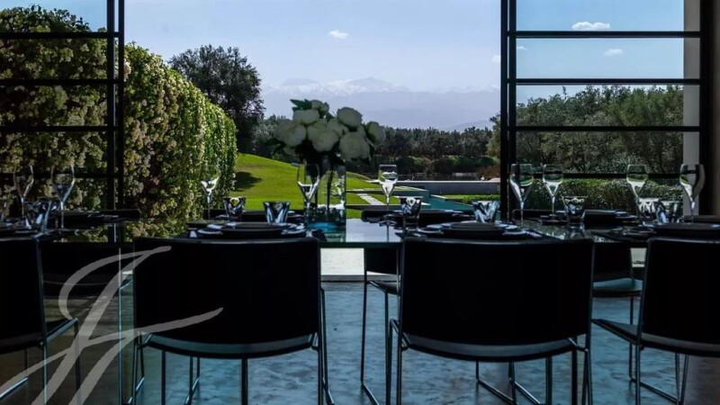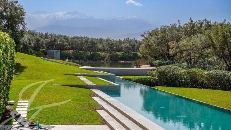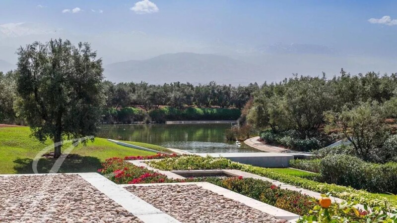 This unique property is a masterpiece of «land art» where the surrounding landscape and the architectural structure of the house are inextricably linked. Built on a beautifully landscaped 4 hectare plot housing an impressive 5 000 sqm lake, an oasis of olive trees and a 50m swimming-pool, the villa with minimalist lines delights with splendid views over the snow-covered peaks of the Atlas. The apparent simplicity of the architecture hides behind its walls sophisticated comfort such as underfloor heating, air-conditioning or heated pool. The upper level comprises an entrance, a sophisticated fitted kitchen, a summer bar, a dining-room and a corner overlooking the main living-room. The lower level comes with a winter bar, a hammam, a cinema room and the main living-room taking advantage of the double height and thus maximizing the views of the landscape. The property features 9 rooms with bathrooms including a suite with private heated pool. This exceptional property is sold furnished.