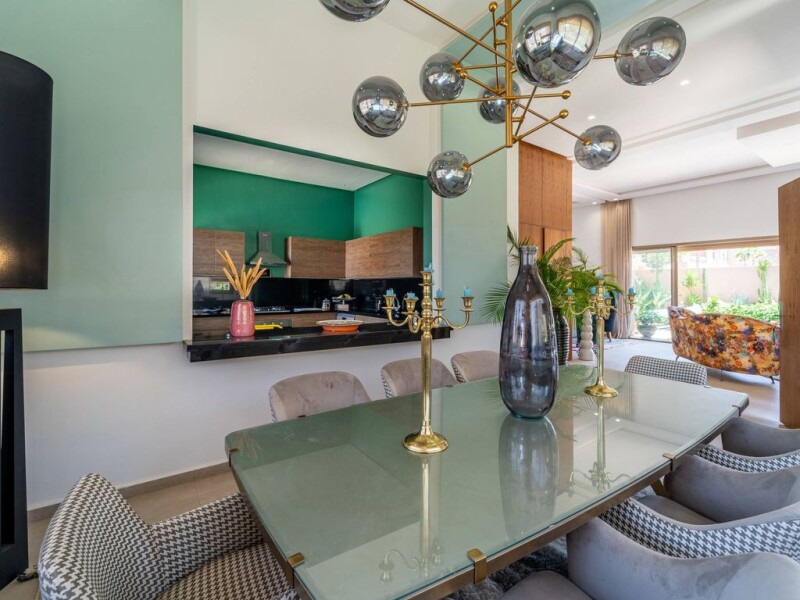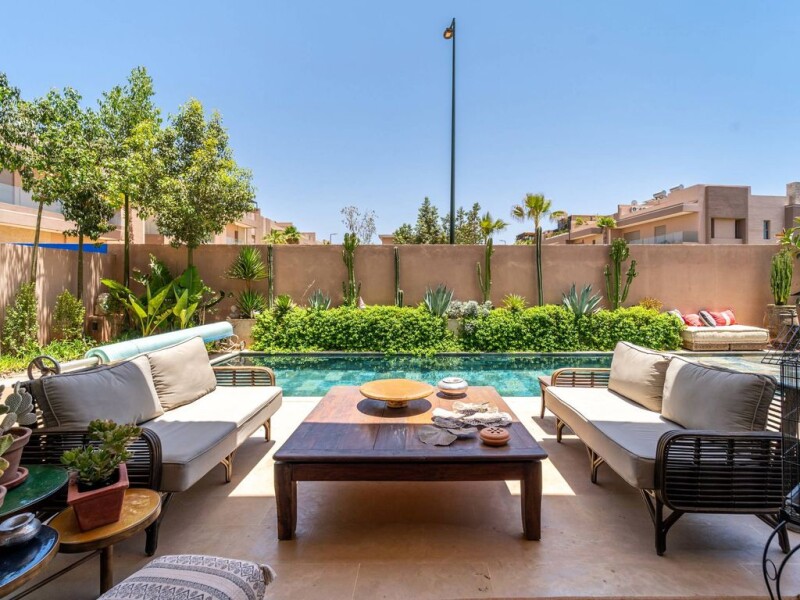 Ideally located within 10 minutes from Marrakech city center and the airport, near to Golf and the airport, in an exceptional location within a secured residential area of approximately 30 villas. This titled, modern and contemporary villa offers a living area of 300 m ² spread over 3 levels, on a plot of 450 m ² with a magnificent infinity pool. The recent and modern villa, sold semi-furnished, offers spacious volumes. Upon entry, there is a hall with a guest toilet, leading to the spacious and bright living room with a comfortable lounge area, a dining area, and a fully fitted and equipped kitchen open to the dining area. The living room, with large bay windows, is very bright and provides access to the terrace along the infinity pool. The upper floor is dedicated to the sleeping area, consisting of three spacious and very bright bedrooms, including a master suite with a dressing room and bathroom. A modern bathroom completes this space. Lastly, the furnished rooftop provides a cozy corner from which to enjoy beautiful sunsets and magnificent views of the Atlas Mountains. Outside, the garden is carefully maintained and beautifully landscaped. Other features include air conditioning, an equipped kitchen, a heated pool, and a furnished rooftop. A beautiful road connecting Marrakech to the village of Amizmiz. This road also provides access to Lalla Takerkoust Dam and the Agafay Desert. For more information, please contact Franck LE PECULIER at +212 6 63 15 92 44.
