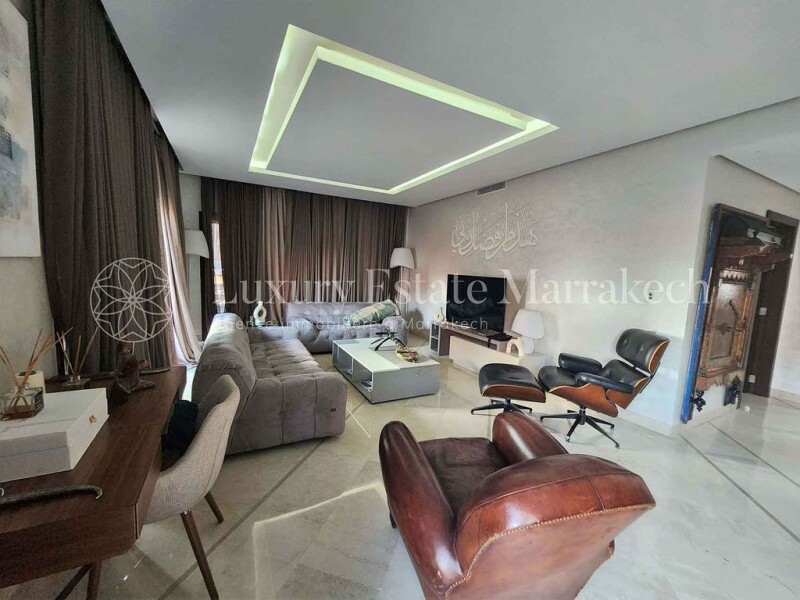 Marrakech, Carré Eden, new apartment 117 m2, 2 bedrooms 2 bathrooms, terrace 30 m2 Carré eden, luxury building in the center of Marrakech, 117 m2, 30 m2 terrace, entrance hall, hallway, guest toilet, large living room, dining room, 2 bedrooms, 2 bathrooms dressing room, fitted kitchen. Large west and north facing terrace, triple glazing, centralized air conditioning, parking space. Privileged subscription for access to the hotel, restaurant, swimming pool, fitness room, spa. Sold empty for €290,000, furnished for €320,000. To grab quickly.