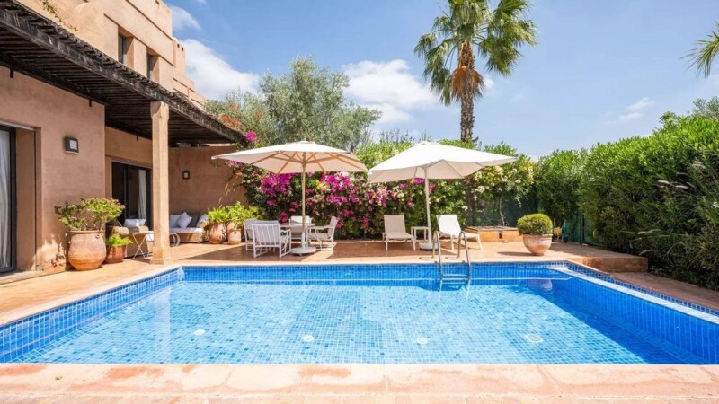 On the Ourika road, discover this villa located in a golf resort offering great amenities! This villa of approximately 230m² (3 bedrooms, possibility of a 4th bedroom), on a plot of 440m² with a swimming pool, surrounded by a very beautiful green and flowery garden. Located on the first line of the golf course, it offers a breathtaking view of it, and a very beautiful view of the Atlas mountain range on the terrace of one of the upstairs bedrooms. Occupied for several years by a couple of retired golfers, this villa is very well maintained, and represents an ideal place to live to fully enjoy the amenities of a golf resort, and the advantages that Marrakech and its region offer, less than 13 kms from the city center! Absolutely worth discovering...