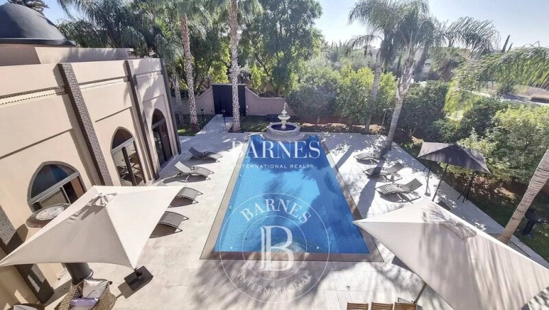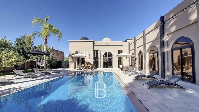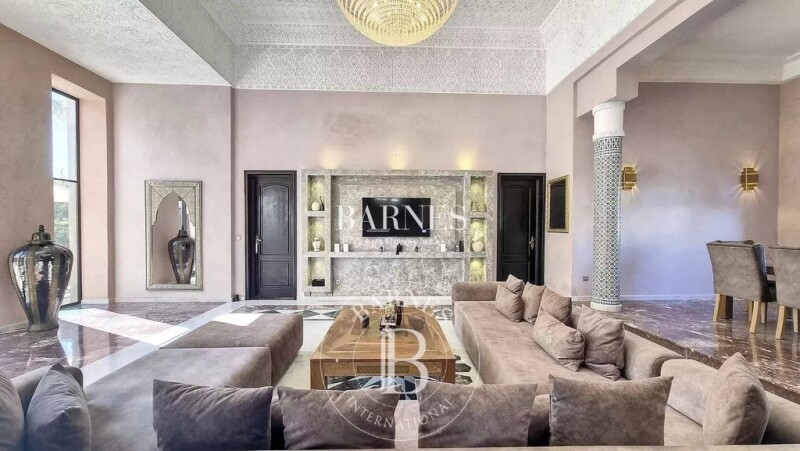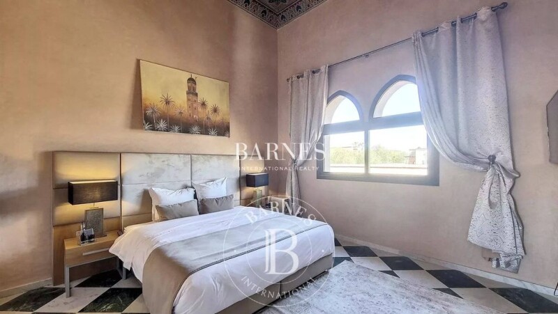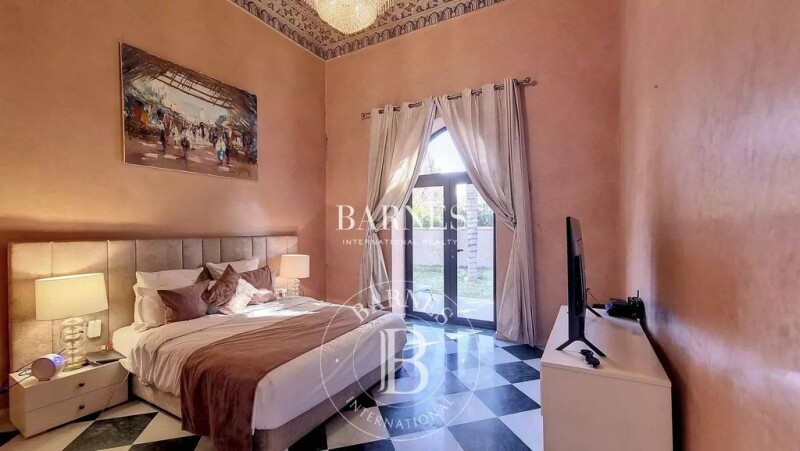 In the heart of Amelkis, this villa is a perfect blend of oriental charm and European comfort. On one level, it features a large reception area, guest toilets, a fully equipped kitchen, and four bedrooms, each with its own en-suite bathroom. A spacious apartment, built into the villa's lower level, includes a bedroom with an en-suite bathroom, a living area, and a kitchen. It has a separate entrance from the main villa. The property also includes a swimming pool and a garage.