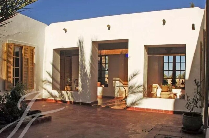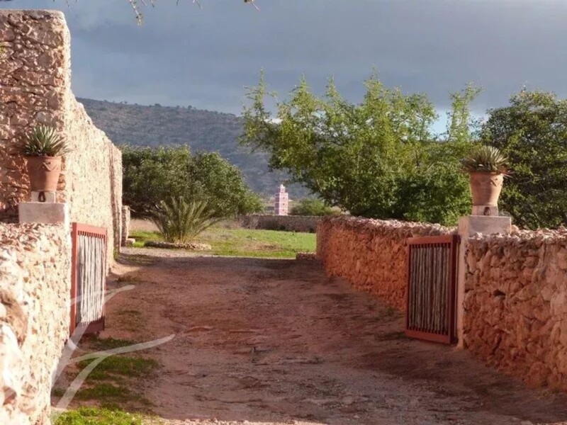 This property is located close to a small rural town 30 kilometers south of Essaouira, not far from secluded beaches. Set on a 7 hectare plot planted with local species such as argane trees, the grounds include the main house, a guest pavilion, a water tower, a caretaker’s house, a garage and a workroom. The main house comprises : a large living-room with fireplace and dining area, a fitted kitchen and 3 ensuite bedrooms. The guest pavilion hosts a living-room with fireplace and an ensuite bedrooms. This titled property which boasts a great potential for a private or commercial use is being sold mostly furnished.