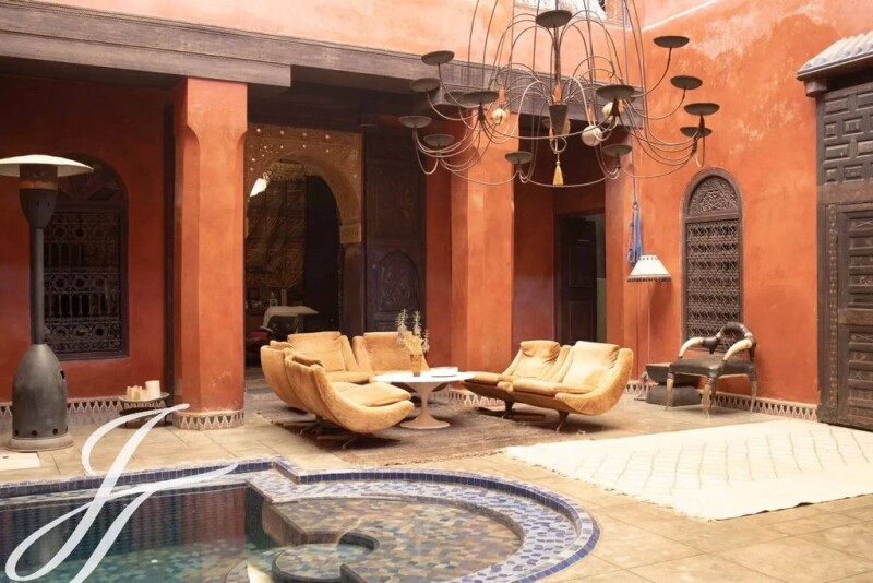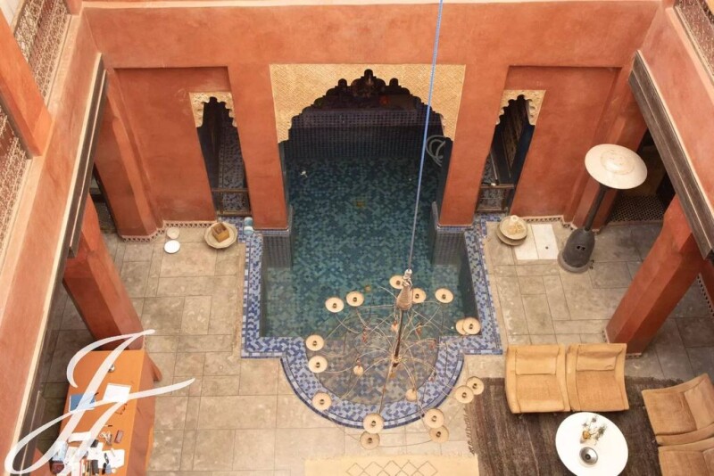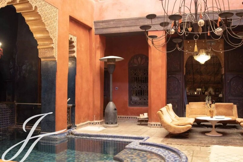 This property is enviably located in the most sought after district of the Medina, a mere 3 minutes walking distance from the iconic Jemaa el Fna square and close to major landmarks. Renovated 20 years ago by its current owners, a couple of designers, the Riad showcases architectural details - woodwork and galleries – and volumes that make it quite élegant. It requires a full update to become an elegant private residence or a chic Boutique-Hotel. Boasting a 250 sqm footprint, it comprises on the ground floor around a handsome courtyard with pool: an entrance, a guest loo, a living-room with fireplace and superb cedar ceilings, a fitted kitchen, a laundry as well as a first ensuite bedroom. The first floor comes with a gallery and 4 ensuite bedrooms. The upper level hosts a spacious roof-terrace with a pergola that could easily be converted into a 6th ensuite bedroom. This titled property is being sold furnished. Great potential.