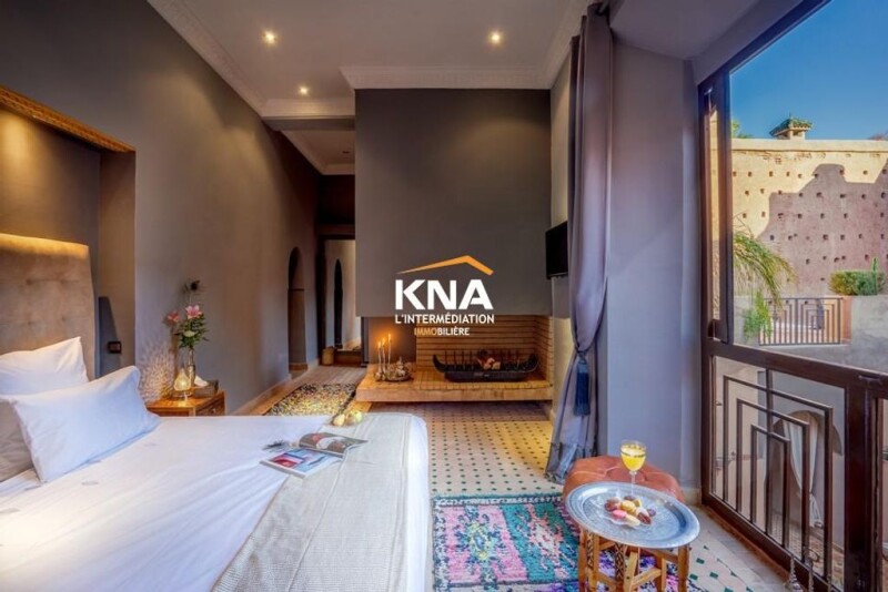 Magnificent Guest House of very high standard located right next to the Royal Palace and the most ancient and majestic parts of the Medina. It welcomes you to discover the pure and true essence of Moroccan traditions and the softness in the sumptuous oriental atmosphere of a royal palace with its ancestral design and its magnificent smells. Total area: 1300 m2 Floor area: 526 m2 It consists of: 7 Rooms and Suites including 2 with fireplace, each with bathroom Patio Living rooms including 1 with fireplace Equipped kitchen Catering in the main restaurant, the courtyard near the swimming pool or the private Petits Lougnes Spa: Private hammam Heated Jacuzzi Private terraces with deckchairs and parasols Solarium Advantages: Unique in its design and architecture Oasis of relaxation and serenity Masterpiece restored in the ancient ramparts of the royal palace and decorated tastefully decorated with unique artwork, antiques and original design. Sale price = 1,395,000 euros.