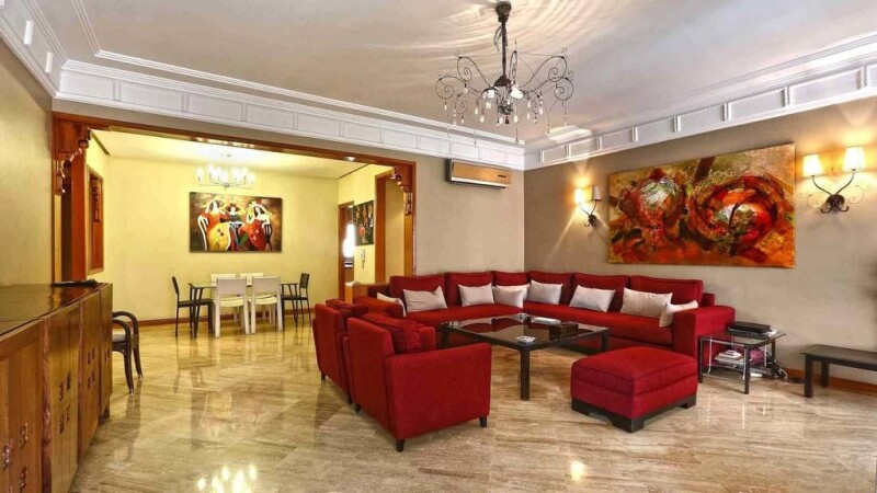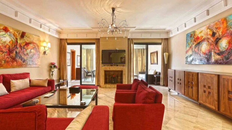 Luxury flat in Marrakech, a few steps away from the city centre and many points of interest. The flat Dina is located in a street close to the boulevard Mohammed V and benefits from 143 m ² of living space with 3 bedrooms, a spacious living room with fireplace, large terrace arranged in order to benefit from the exceptional climate of Marrakech, noble and quality materials in a residential building of standing. A very good investment for a pied-à-terre in the Red City or rental prospects.