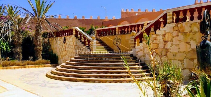 Sale in Agadir area A sumptuous palace with its private beach at 15 minutes from Agadir. The palace has 3000 square meters of living space with its 12 suites, its swimming pool, its discotheque, its tennis court and its many lounges and living areas. A garden of 7000m ² comes to bring a case around….