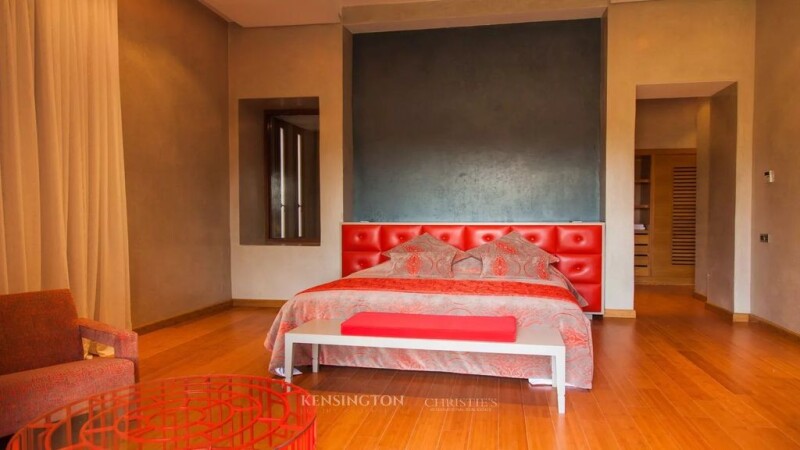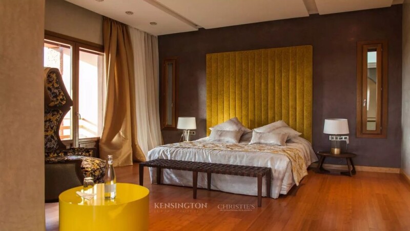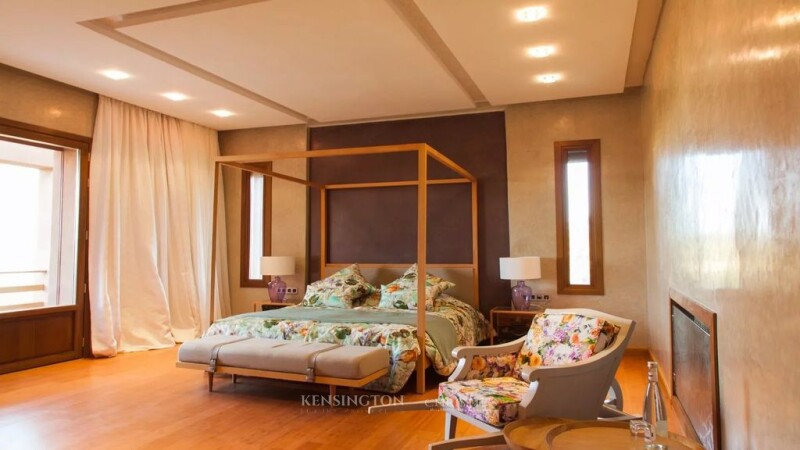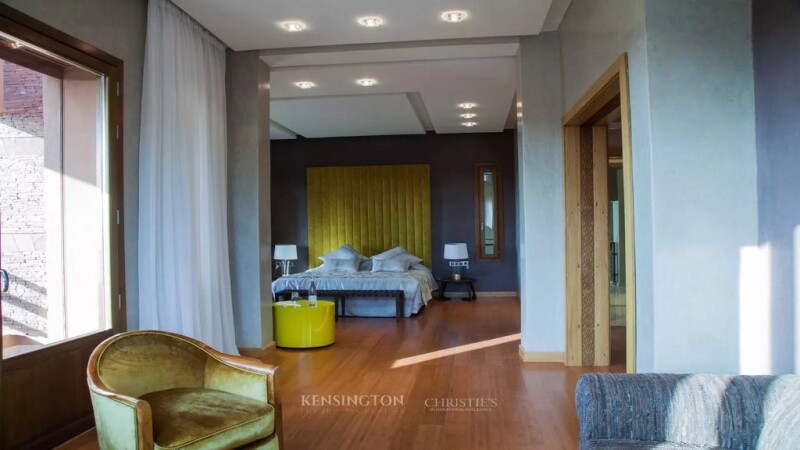 In the heart of the Palmeraie, this combined modern and traditional style villa will seduce you with its 7 en-suite bedrooms, reception room and further 4 living rooms and a cinema room. On the wellness side you’ll find a sauna, a hammam, an indoor pool and an outdoor pool. Two hundred year old olive trees and palm trees measuring up to 16 meters high make up the majestic surrounding garden.