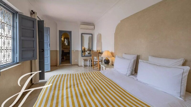 This property is enviably located in a touristy and sought after district of the Medina, close to major landmarks. A parking-lot is nearby. The venue has been successfully operated for years as a ç suite small Boutique-Hotel, offering to guests a jacuzzi, a traditional hammam and several lounges, some with fireplace. Boasting a 200sqm footprint spread around 2 courtyards, the Riad also features a fitted kitchen and tiny staff quarters. A handsome roof-terrace hosts a solarium, a dining as well as the caïdal suite that boasts awesome views over the Medina and the Atlas mountains from its private small terrace. This titled property sold furnished is a great investment opportunity.
