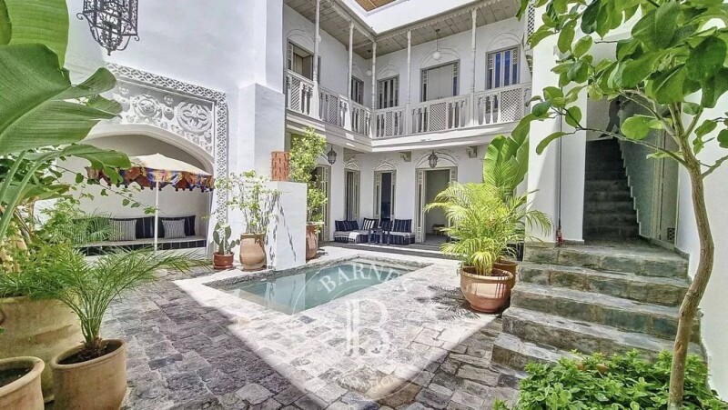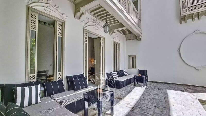 Stunning and Rare Riad with 4 Beautiful Bedrooms for Sale in the Heart of Mouassine, Marrakech Located in one of the most sought-after neighborhoods in the Medina of Marrakech, just a stone’s throw from the famous Jemaa El Fna Square, this exceptional riad offers a unique charm and an unparalleled location. Key Features: Floor Area: 150 m² Unique Patio: A beautiful sunny open patio with a swimming pool Ground Floor: An entrance hallway leading to the magnificent, bright patio with a pool Fully equipped kitchen with a pantry and storage area Laundry room Guest toilet Living/dining room with a fireplace One bedroom with an en-suite bathroom First Floor: 3 stunning bedrooms, each with its own bathroom A beautiful terrace with panoramic views, dining space under a pergola, and storage area This riad is a true gem, located in a peaceful area where you can hear the birds sing, yet just minutes away on foot from the iconic Jardins Secrets. You’ll be captivated by the carefully curated décor, impressive ceiling heights, natural light, spaciousness, and the ideal location. Blending contemporary architecture with Moroccan flair, this property is sure to win your heart during a visit!.