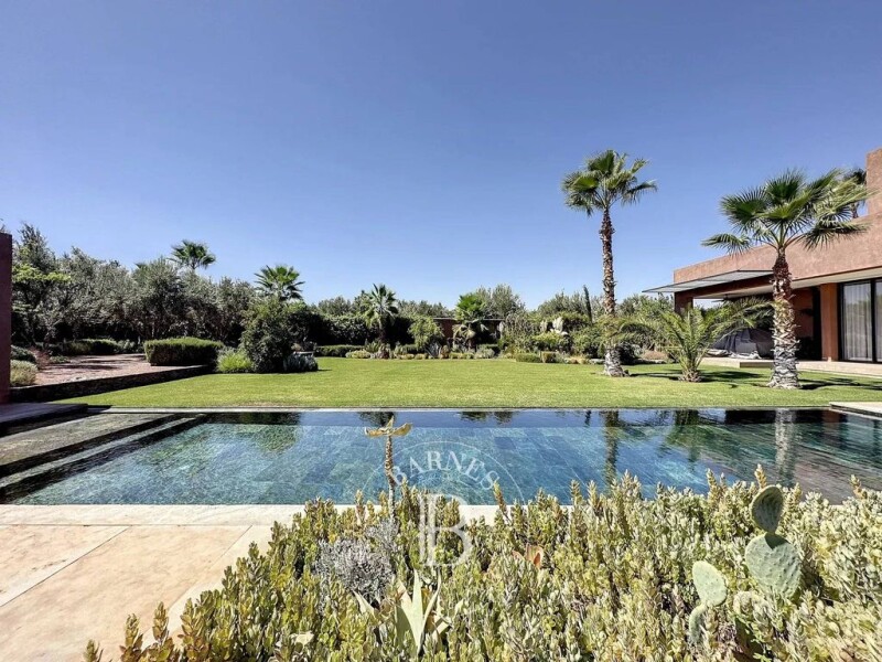 Are you looking for a luxury contemporary villa in Marrakech? Look no further than this magnificent property located on the Ourika road, just 15 minutes from the city. With its 450 square meters of living space and a plot of 2350 square meters, this luxury villa is ideal for those seeking to combine modernity and tradition in a tranquil and comfortable setting. This exceptional villa features 4 bedrooms with en-suite bathrooms or showers and dressing rooms, and pre-installed ducted air conditioning system. The whole space is tastefully furnished, subtly combining noble materials and Berber touches, offering an open living space including lounges, dining room, and fully equipped modern kitchen. The beautiful landscaped garden designed by a renowned landscape architect, with a large 15x4 meter infinity pool with a sheltered pool house and exotic chromatic tones generated by Bali stone, is a true asset to this luxury villa. In terms of technical specifications, the villa features double glazing in aluminum, oak doors and joinery, pre-installation for underfloor heating, pre-installation for pool heat pump, insulation for terrace roofs and double partition walls, as well as underfloor heating in the living room and lounge. Whether you are looking for a luxury villa to live in or to invest in, this property is ideal for you. As a real estate agency specializing in the sale of luxury properties in Marrakech, we are here to accompany you throughout the buying process. Don't miss this unique opportunity to buy a luxury contemporary villa on the Ourika road in Marrakech. Contact us now to schedule your visit!.