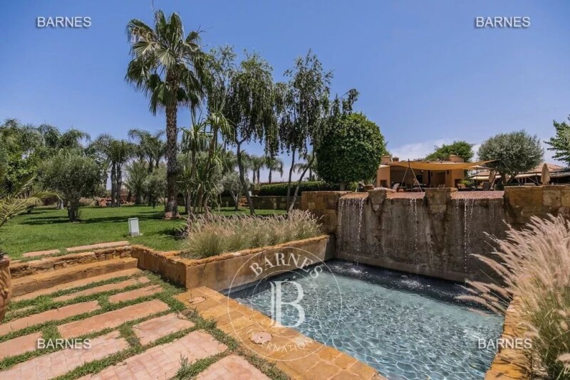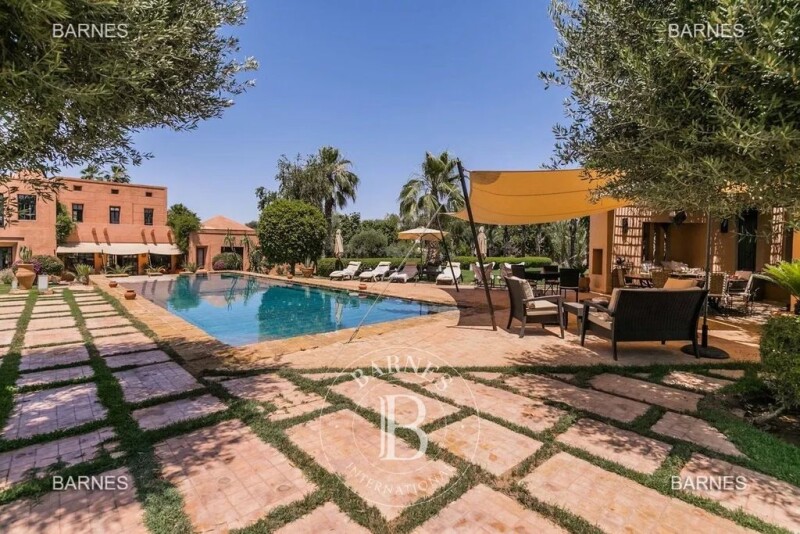 Superb villa located in the palm grove of Bab Atlas, on a park of one hectare facing the Atlas Mountains, composed of 7 suites with bathroom and dressing room, large living room with fireplace, dining room, TV lounge, very pretty summer living room, jacuzzi, 3 housing employees, beautiful infinity pool.