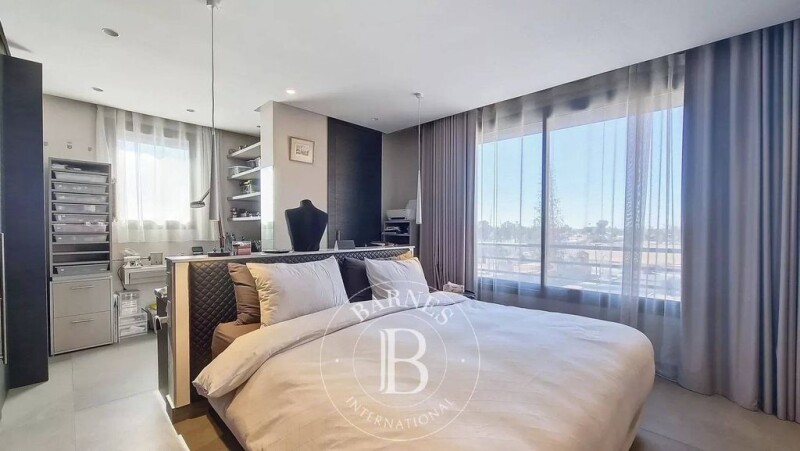 Barnes Marrakech offers this beautiful apartment located in the prestigious Victor Hugo area. This high-end property is available for sale either unfurnished or furnished. It features a fully equipped kitchen, 2 spacious and bright bedrooms, each with built-in closets and an en-suite bathroom. The living room, with a fireplace, opens onto a private terrace with no direct overlook. A dining area complements the space. Additional features include centralized air conditioning, fiber optics, and a water softener for the entire apartment.