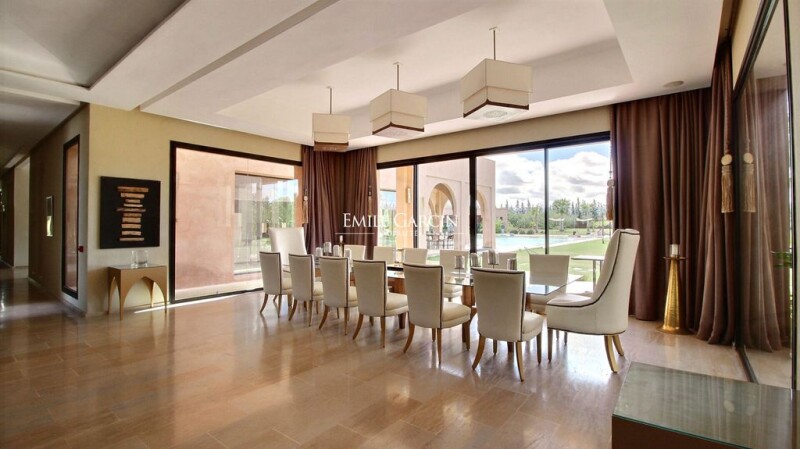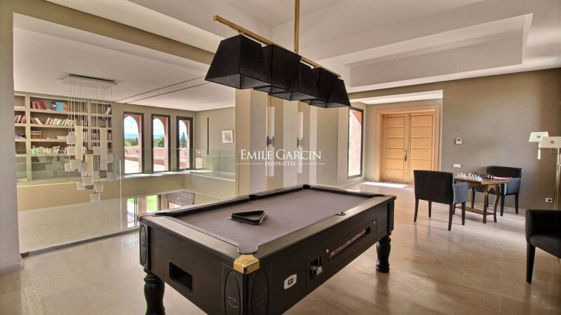 Arab-Andalusian style property presenting 1700 sq.m of living area on the Route de l'Ourika, 30 minutes from Marrakech. It offers six suites of 100 sq.m with unique decors, each equipped with a large dressing room, bathroom, television, fireplace, private terrace and sunbathing area. A guest house is equipped with four additional suites. Large reception rooms, professional kitchen, home gym, spa with hammam and massage room, pool room, library, home cinema. The property sits on a plot of 1.7 hectares with a heated half-Olympic sized swimming pool equipped with two hot tubs, a pool bar and a pool house, plus a pétanque area, a putting green and large covered terraces.
