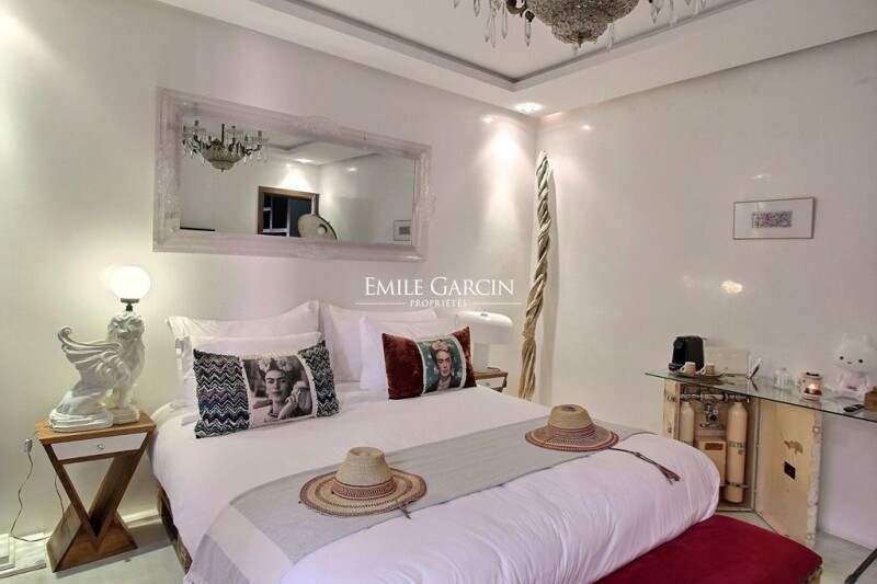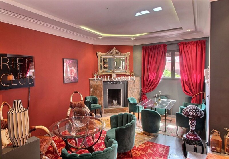 Boutique hotel for sale in the heart of Guéliz, sitting on 400 sq.m of land featuring a beautiful courtyard with a swimming pool. The ground floor comprises a living room with a fireplace, a lovely bar, a dining area and a large kitchen, creating a cosy vintage ambience. The villa's three floors offer a total of six ensuite bedrooms, as well as a private rooftop terrace. The total floor space is 600 sq.m. The property stands as a turnkey hotel business, but could also be converted for private use as a unique city mansion.