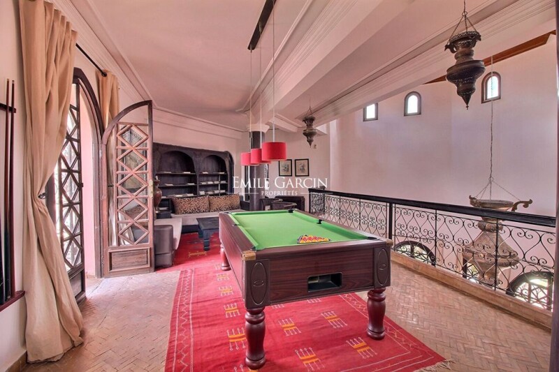 Located on the Route de Fez, only 15 minutes from the city centre, this attractive country house presents 500 sq.m of living area on a hectare of private grounds. Reception room with fireplace, dining room, kitchen, six bedrooms, large terrace overlooking the gardens, pretty pool house (unfurnished). Staff accommodation. Property in need of updating.