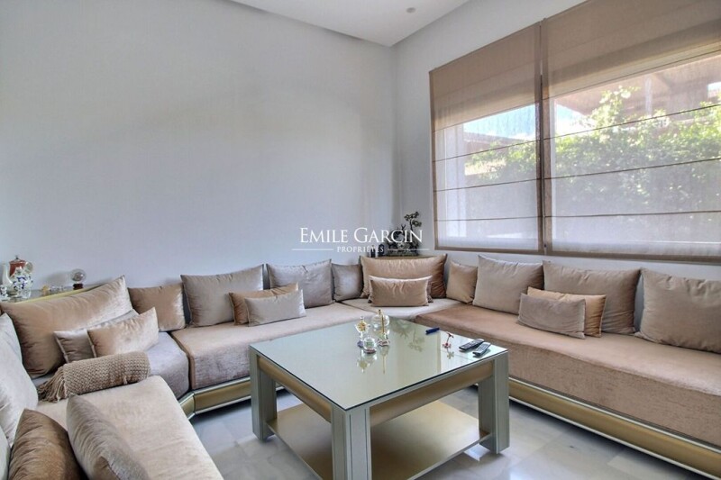 Handsome modern villa sitting on a private plot of 1800 sq.m on a golf resort just a few kilometres from the centre of Marrakech. Spread over three levels, the villa presents a ground floor comprising a large reception room with TV lounge and kitchen. The basement level is equipped with an English courtyard and offers bedroom with bathroom as well as a large living room that can be used as a home gym or artist's studio. On the first floor, you will find four bedrooms including a spacious master suite with views of the Atlas Mountains. This villa is equipped with an elevator and a heated swimming pool.