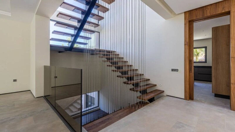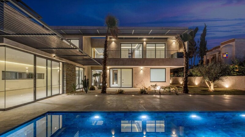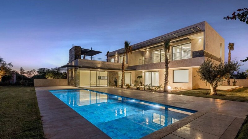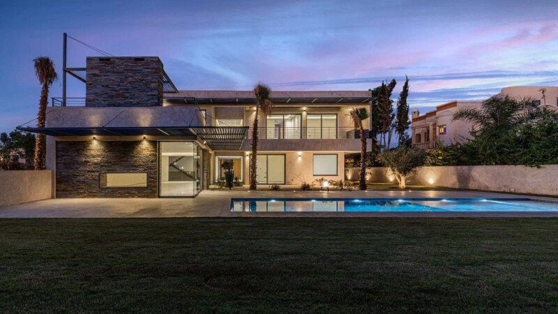 Modern villa for sale located in the Amelkis complex on a 1505m2 plot of titled land, enjoyment included. This 3-level villa with a built area of 675m2 + terrace includes an extremely complete basement as follows: 2 staff bedrooms with shower rooms, one bedroom with bathroom and terrace fitted with a jacuzzi, a gym and a magnificent hammam. The ground floor includes a guest toilet, a fully equipped kitchen with pantry, a magnificent living room, a bedroom with dressing room and bathroom, a terrace with a very large swimming pool and a garden planted with trees. The first floor features a master bedroom with dressing room, bathroom and terrace overlooking the garden and pool, and 2 further bedrooms, each with bathroom and dressing room.