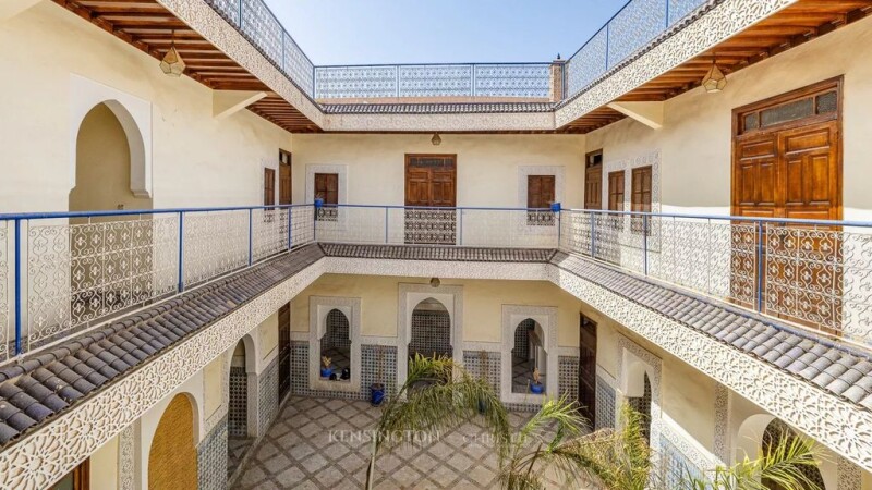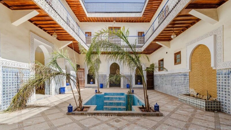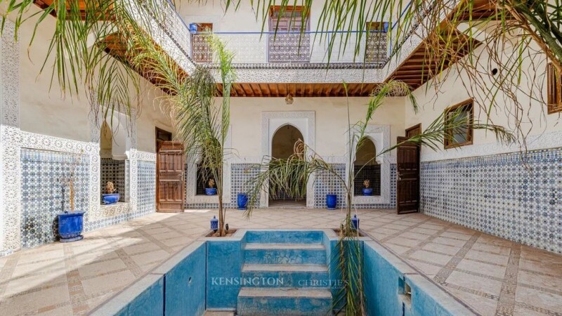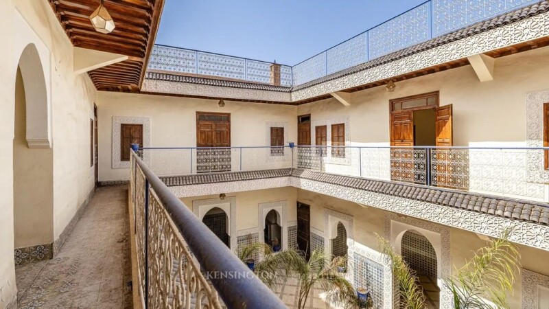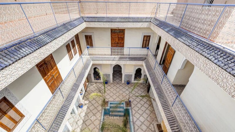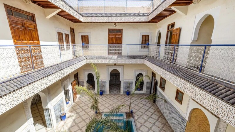 This magnificent 303 m² riad, located in the heart of Marrakech's medina, is a real gem for those looking to invest in charming Moroccan real estate. With its generous surface area and its many well-designed spaces, it offers a host of development and operating possibilities, whether for a residential, commercial or mixed-use project. Main features : Surface area: 303 m², ideal for a variety of projects Easy Access: Car drop-off right outside the riad door, convenient for residents and visitors. Communal Areas: -3 Large Lounges : Two of which can be converted into 4 suites, opening onto the patio for a light and airy space. -Swimming pool: 12 m² located in the heart of the patio, perfect for relaxing. -Spacious Kitchen: Well equipped for preparing meals for large groups. -Reception Room: Ideal for welcoming guests in style. -Staff Room: For service staff and storage of supplies. Upstairs: -6 Bedrooms: Each with its own bathroom, ensuring comfort and privacy. Prime Location: Just a 15-minute walk from the famous Jamaa El Fna square and 5 minutes from the Medersa Ben Youssef. Versatility: Can be used as a guest house, restaurant or for any other commercial project. Refurbishment work: Some renovation work is required to modernise the space to suit your preferences. This riad is an investment opportunity.