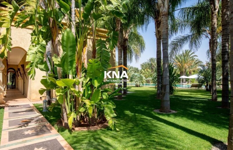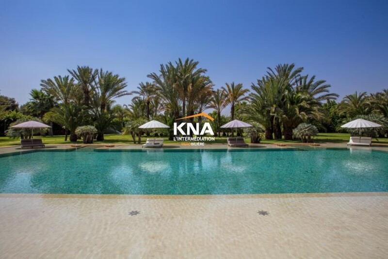 Exceptional luxury villa, fully air-conditioned 25 minutes from the city center on the road to Fez 30 minutes from the airport 25 minutes from the city center Land area: 14000 m2 Living area: 1280 m2 Terrace area: 1600 m2 Porch entrance: 64 m2 It consists of: Main villa: 571 m2 + 1095 m2 terrace Entrance hall Cloakroom Guest toilet 1 Large living room 1 Large living room 1 Indoor and outdoor dining room Central fireplace 1 Large fully equipped kitchen with plasma TV 3 Suites with fireplaces, 3 bathrooms (spa, shower, double sink, separate toilet, heated floor, air conditioning), Television, mini-bar, safe, fireplace, reversible air conditioning and terraces 1 Bedroom with Television, mini-bar , safe, fireplace, reversible air conditioning, bathroom (whirlpool, shower, double sink, separate toilet, heated floor, air conditioning) and terrace Guest pavilion: 449 m2 + 375 m2 terrace 2 Suites with fireplaces and reversible air conditioning , 2 Bathrooms with spa, showers, heated floors, reversible air conditioning and terraces 4 Bedrooms with fireplaces, 4 bathrooms with spa, showers, heated floors, reversible air conditioning and terraces The pavilion is fully air conditioned and furnished Spa: 168 m2 1 Jacuzzi for 6 people 1 Changing room and shower Heated floor, radiators and reversible air conditioning 1 Hammam 1 Hair salon 1 Massage room 1 Sports room The Park: 1 Heliport 1 Rescue group Huge Heated infinity pool: 36m x 22m and 1.68m depth (heating extra) 12 Diving boards 2 Counter-current swims 108 light points Huge Rose garden Olive trees Approximately 480 palm and coconut trees Lemon trees Orange trees An impressive quantity of bougainvillea Fountains Fully lit garden Emergency generator 2 Drilling Miscellaneous: Reversible air conditioning Outdoor lounges 1 Very large laundry room in the basement equipped with washing machine and dryers Huge cupboards Cold room Central heating Well 1 Very nice room for the maid 1 Video surveillance system Sale price: contact us.