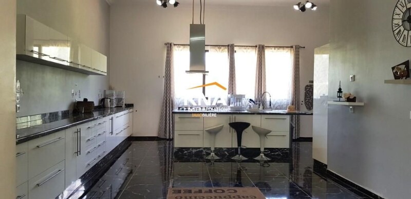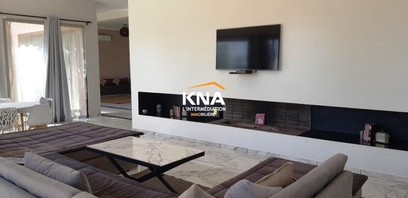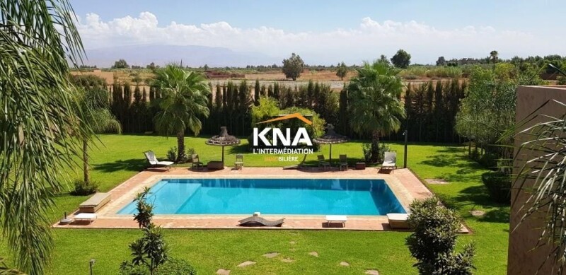 Beautiful independent and modern Villa with a wonderful view of the Atlas Mountains on the road to Fez km 20 (1 and a half km of track but currently being tarred) With a beautiful ceiling height of 4m for the ground floor floor which allows natural ventilation of the house, it has large bay windows in wrought iron natural raw color with pivoting opening and stadip glass on the entire front facade of the house. The villa is surrounded by a 2 meter high wall with cypress trees all around and bougainvillea flowers. Land area: 5,000 m2 Living area: 525 m2 It consists of: Ground floor: 1 Moroccan living room of 55 m2 with swimming pool view 1 European living room of 50 m2 with large fireplace, flat screen, terrace and swimming pool view 1 Fully Franke brand kitchen equipped with 47 m2 with a large central island Guest toilet 2 Bedrooms with bathrooms served by a long corridor 1st floor: 1 Large master suite of 45 m2 on the left wing with bathroom and dressing room 2 Suites of 25 m2 on the right wing with bathrooms, walk-in showers and dressing room 2 interior staircases and 2 exterior staircases serving each wing of the house Pavilion: 3 bedrooms each with bathroom, reversible air conditioning Private swimming pool Miscellaneous: Composed garden a market garden part: a hundred fruit trees, olive trees, an exotic garden, palm trees... Infinity swimming pool with a surface area of 12 mx 6 m, connected with water cover Hammam Technical room with modern automated system European type The doors are made to measure in walnut wood TV installation in each room Small caretaker's pavilion with bedroom, bathroom and small living room Wifi system throughout the house installed by a network engineer as well as distribution switch system automatic as a private well serving the entire land with an automatic pump with on one side a filter for drinking water for the villa and suppressor and on the other side system for the garden Underground water tank (water reserve serving for the house) Automatic drip system Surveillance camera system NB: The villa is independent with a view of the Moroccan Atlas, not overlooked. The neighborhood consists of farmers and a few villas in the distance. Titled villa Sale price: 890,000 euros.