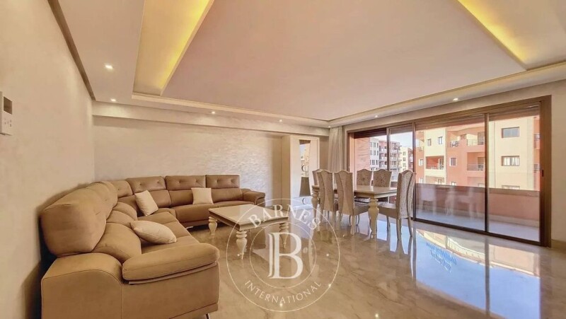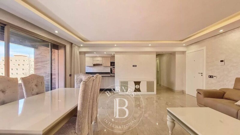 Barnes Marrakech offers this charming apartment in a newly built building, sold fully furnished. It consists of a fully equipped kitchen (fridge, oven, dishwasher, microwave, washing machine) by Bosch, two bedrooms with en-suite bathrooms, a terrace, and a parking space. High-quality materials were used during construction. The residence includes 14 apartments and is equipped with surveillance cameras.