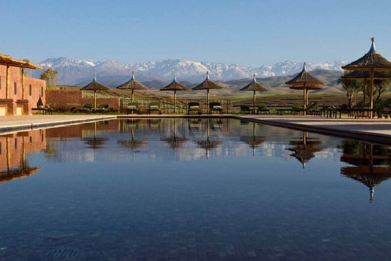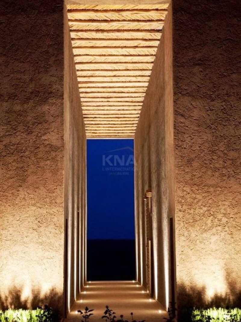 Unique in its kind and extremely rare... Well-being guaranteed! Relaxation, zenitude or sports activities, such is the highlight of this magnificent and authentic Property! Land area: 4 hectares Living area: 2400 m2 It consists of: 4 bedrooms of 34m2 on the ground floor, each with a 1 queen-size double bed, bathroom with walk-in shower and separate toilet 1 bedroom of 34m2 on the ground floor with 1 twin bed, bathroom with bathtub and separate toilet 4 bedrooms of 34m2 on the ground floor, each with 2 twin beds, bathroom with bathtub and separate toilet 9 bedrooms of 30 m2 on the 1st floor, each with 1 queen-size double bed, bathroom with walk-in shower and separate toilet Lounge bar Lounge with fireplace with beautiful background music Restaurant Indoor and on the covered terrace or around the pool house Cuisines offered: Moroccan & Mediterranean / Dietetic & Detox on request Spa with supplement: 2 massage rooms, 1 around the pool house Traditional hammam Scrub room Outdoor jacuzzi Pedicure & manicure treatments Miscellaneous: Satellite TV with international channels Safe Internal & external telephone Wifi Terrace lounge Vegetable garden: Garden & organic aromatic vegetables Farm & sports activities Information: Check in: from 2 p.m. Check out: 11 a.m. Included in the rental price: Breakfast Linen and sheets Toiletries and bath products Electricity, water, gas consumption With supplement: Half-board: From 25.00 euros / pers / day Full board: From 50 euros / pers / day Festive dinner: From 55 euros / pers / day Jacuzzi: 10.00 euros / person Massage: on request Hammam: 30.00 euros Organization of golf activities Mountain biking available to guests Organization of hiking & trekking & quad Organization of hot air balloon rides Possibility of yoga classes on request Rental conditions: The Villa must be returned in the condition of check-in. Otherwise, a supplement may be charged to the customer A deposit of 2000 euros is required by the owner Booking conditions: Deposit debited upon booking: 40% 2nd deposit 45 days before arrival: 60% of the total amount of the reservation Payment method accepted for installments: Bank transfer or cash Payment method accepted on site during your stay: Cash The total amount of the reservation does not include optional products or services ordered on site Cancellation conditions and fees: Any request for modification and cancellation must be sent by email to the agency Cancellation conditions apply with reference to the local time of the Country The reservation deposit is never refunded in the event of cancellation Cancellation less than 45 days before arrival: 100% of the total amount of the reservation is due to the agency No show: 100% of the total amount of the reservation is due to the agency Advantages: Cocon of well-being, serenity & multiple sports activities Only 30 minutes from the city Enchanting setting & sublime view of the Atlas Mountains Consider privatizing this magical place for unforgettable events organized turnkey in the most perfect discretion and attention Rental price per night in accommodation and breakfast (minimum 3 nights): contact us Tourist taxes (Adults): 3 euros / pers / night.