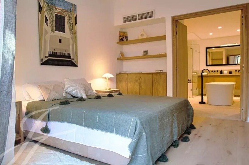 This property is ideally located in the most sought after area of the exclusive Hivernage district, a few steps from major landmarks of downtown Marrakech. On the ground floor of an upscale gated residence, it features a 220 sqm garden with heated 9mx3m private pool and mini pool-house: a true villa in the heart of the Red City! Boasting a 150 sqm internal size, it has been fully refurbished with high standard amenities such as a reversible centralized air-conditioning and a domotic system. It comprises: a handsome living-room with dining area and office facing the pool, a bright fitted kitchen, 3 ensuite bedrooms one of which a master with bath as well as a guest loo. This unique titled property also comes with a private parking in the basement of the building.