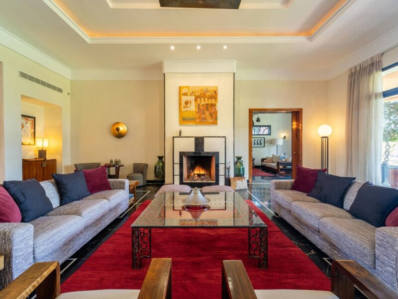 An art-deco villa of four bedrooms in a park of more than one hectare twenty minutes from the center of the ochre city. The complex, which covers more than one hectare, is located in the heart of the residential area of the golf complex. Once past the property entrance, you are surrounded by a varied garden. Access to the villa is through a courtyard with a central pool with green zellige. The entrance door of the villa takes you directly to the main living room, which enjoys wonderful sunshine thanks to the large bay windows that open onto the garden. The four bedrooms, each with its bathroom and private terrace, are to the right and left of the vestibule. On either side of the living room, we access the library or the dining room connected to the kitchen by a galley. The villa's roof is furnished with a dining and lounge area, allowing many guests by the fireplace. The extra kitchen is connected directly to the main kitchen by a flat mount, making the service more efficient. A heated swimming pool in the central axis of the villa has its small pavilion, which houses a hammam, sauna, bathroom, and a large multi-purpose room. Other: photovoltaic panels, solar panels, tennis court, heat pump, personal housing, security camera, garage, large storage, laundry. Domaine Assoufid is a vast golf and tourist area, accessible from the Amizmiz road. For further information, please contact Nicolas Béguin on +212 6 61 92 15 50.
