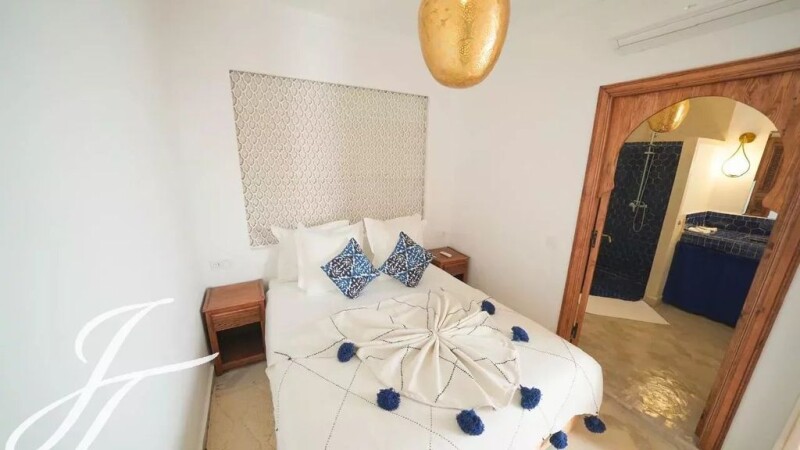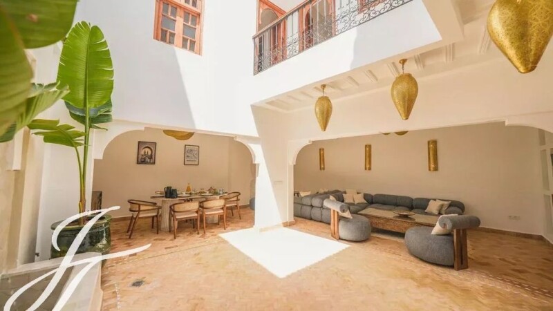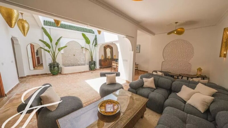 This property is enviably located in a sought after and safe area close to the Royal Palace and boasts an easy car access. Newly and meticulously renovated by its current owners, the Riad is in excellent condition throughout. It is perfect for a private or a rental use. Boasting a 78 sqm footprint, it comprises on the ground floor: a tiny entrance with a guest loo, a fitted kitchen as well as a spacious reception open plan area in the courtyard fitted with an electric roof. The first floor comes with 3 ensuite bedrooms. On the upper level, the roof-terrace hosts a shaded dining and a plunge-pool. The views from the upper terrace are utterly superb. This titled property is being sold furnished.