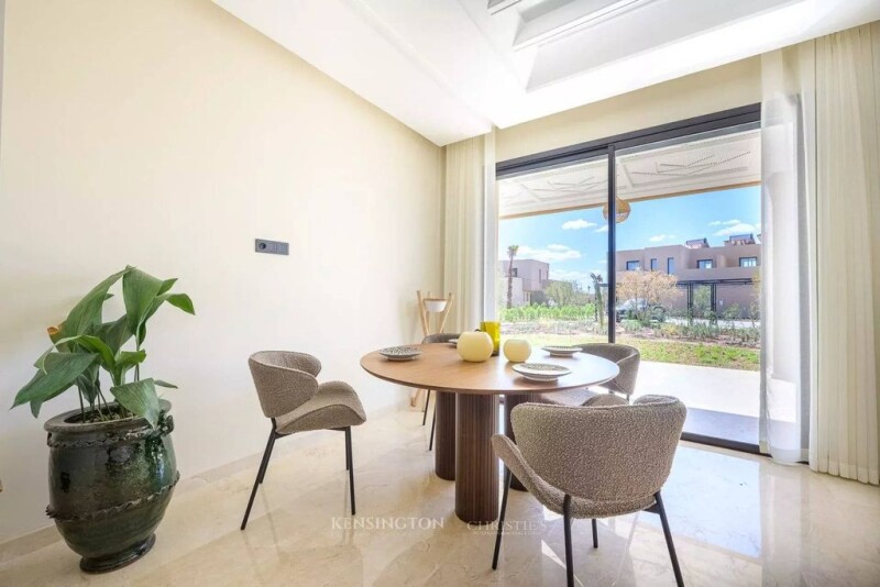 Discover a Sanctuary of Serenity in the Heart of the Palmeraie We present an exceptional development comprising 32 high-end villas, nestled within a secure residence, offering a privileged lifestyle where comfort and tranquility harmoniously converge. Each villa, meticulously designed with a keen attention to detail, features: Three luxurious suites, each complemented by a private bathroom and dressing area, a refined living space encompassing a salon and dining area, conducive to both relaxation and sophisticated entertaining, expansive terraces affording breathtaking vistas of the majestic Atlas Mountains and the residence's swimming pool. A fully appointed kitchen, augmented by staff quarters and a laundry facility, and a convenient guest powder room. Villa "A": A living area of 300 square meters, enhanced by an 80-square-meter terrace. Price: 5,300,000 DH. For further information or to arrange a private viewing, we invite you to contact us at your earliest convenience.