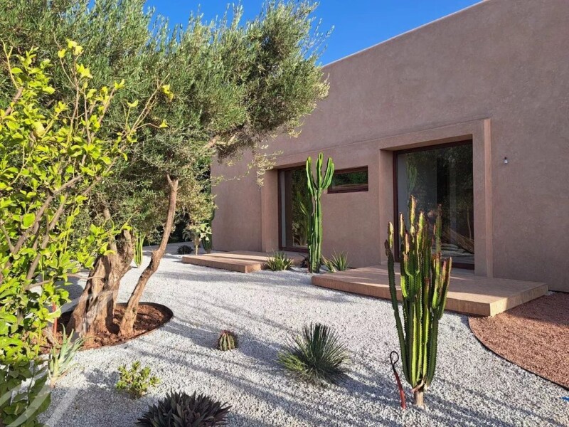 This property is ideally located less than 15 minutes from downtown Marrakech, in a new small gated community of 6 single-storey villas. Built with excellent quality standards, the villa is nestled within a 1 150 sqm garden with private pool and nice views over the Atlas mountains. Boasting a 315 sqm internal size, it comprises: an entrance with guest loo, a large living-room with central fireplace and dining area opening onto the pool, 3 ensuite bedrooms, an office as well as a laundry. This titled property is being sold unfurnished.