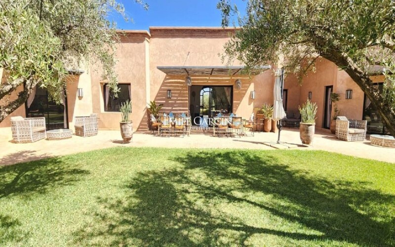 Charming house presenting 250 sq.m of living area on one hectare of south-facing landscaped grounds surrounded by countryside. Constructed using traditional Moroccan craftsmanship and materials, this beautiful house is an oasis of calm just 25 minutes from Marrakech. It consists of a large living room, a lounge with fireplace, a dining room with garden view and three ensuite bedrooms. Potential to add an extension creating an additional 300 sq.m. Large open spaces and furnished outdoor terraces. The leafy grounds are equipped with a swimming pool, fruit trees and 180 olive trees. Storage space and caretaker's quarters.