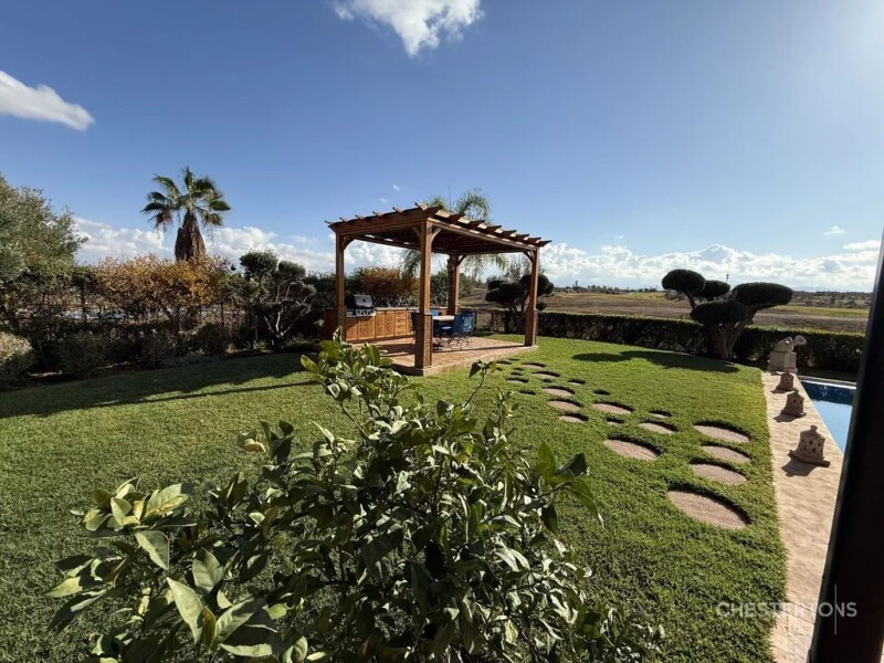 Exceptional Villa in a Prestigious Golf Resort in Marrakech Located within a renowned golf resort on the famous Route de l’Ourika in Marrakech, this stunning 450 m² semi-detached villa offers an unparalleled living experience, blending luxury, modern comfort, and natural beauty. Prime Location Nestled at the foot of the majestic Atlas Mountains, the villa boasts breathtaking views of snow-capped peaks and a serene natural environment. Set within an exclusive resort, you’ll enjoy access to a scenic artificial lake, fine dining restaurants, and world-class amenities, all surrounded by lush greenery. Sophisticated Living Spaces With four spacious bedrooms and six elegantly designed rooms, the villa combines contemporary design with warm Moroccan touches. Every detail has been thoughtfully crafted, featuring air conditioning, a fireplace, an advanced home automation system, a water softener, and premium furnishings to create a functional yet inviting ambiance. Luxury Outdoor Features The outdoor spaces are equally impressive. A private pool invites relaxation, while the patio with a barbecue area is perfect for al fresco dining. The resort also offers a world-class golf course and a tennis court, ideal for sports enthusiasts. The beautifully landscaped garden, equipped with an automatic irrigation system and harmonious lighting, provides a tranquil green haven. Uncompromised Security and Comfort Your peace of mind is ensured with state-of-the-art security features, including an alarm system, CCTV surveillance, 24/7 security service, a video intercom, and electric shutters. For connectivity, high-speed fiber optic internet and quality TV distribution are readily available. Additionally, a concierge is on hand to cater to your daily needs. A Unique Lifestyle Opportunity Combining nature, leisure, and tranquility, this villa epitomizes luxury and excellence in an idyllic setting. Perfect as a primary or secondary residence, it presents a rare opportunity to live in an exclusive environment, harmonizing the beauty and serenity of Marrakech. Welcome to your new home, where comfort, prestige, and nature converge.
