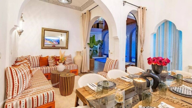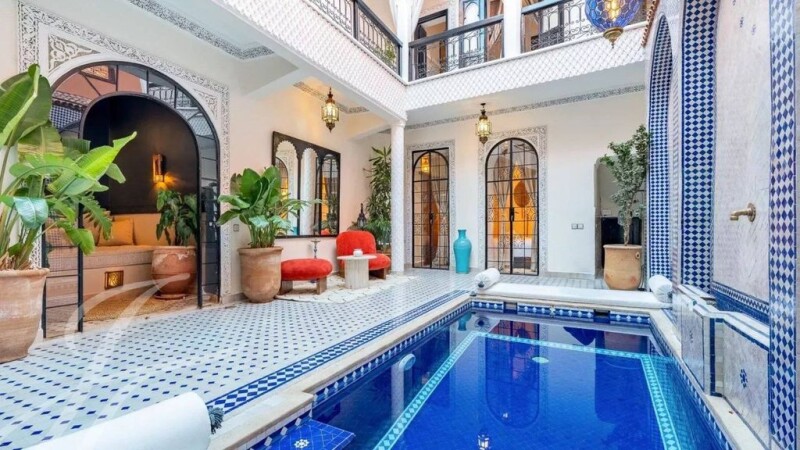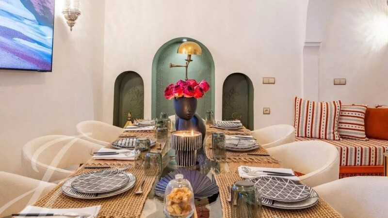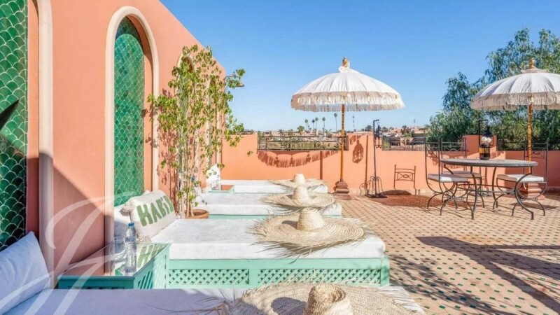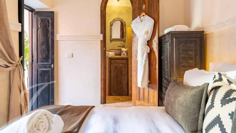 This property is enviably located in a safe and sought after area of the UNESCO listed Medina of Marrakech. It boasts a close car access. Renovated in a traditional spirit by its current owners, the Riad features unusual comfort amenities such as central heating system, heated pool and hammam. Boasting a 126 sqm footprint, it comprises on the ground floor: a charming courtyard with pool and small summer lounge, a living-room with dining area, a fitted kitchen and a first ensuite bedroom. The first floor comes with 3 ensuite bedrooms. On the upper level, the roof-terrace delights with utterly awesome views over the iconic Koutoubia and Mamounia. It hosts a shaded dining, a solarium, a hammam as well as a last ensuite bedroom. This titled property is being sold furnished.