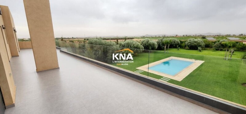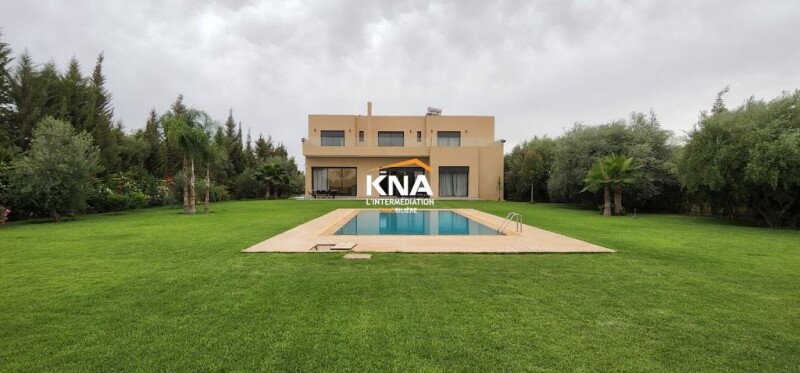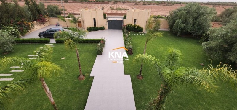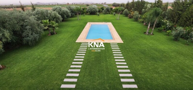 Beautiful contemporary style villa located on the road to Fez km 21 Land area: 4800 m2 / Living area: 456 m2 It consists of: Ground floor: Large European living room Fireplace living room Moroccan living room 1 Dining room Fully equipped kitchen with access to the outside 2 Large bedrooms each with bathroom 1 Hammam with its rest room Guest toilet On the 1st floor: 3 Bedrooms each with bathroom, dressing room & view of the Atlas Mountains 1 Master bedroom with bathroom, dressing room & view of the Atlas Mountains Miscellaneous: Swimming pool with pre-installation of heating Wooded and maintained garden with a dozen olive trees Automatic watering Outdoor living room Outdoor dining room Vegetable garden Chicken coop Terraces Solar heating Optical fiber 12 Video surveillance cameras 12 Floodlights for garden lighting Intercom Automatic entrance door 2 Service bedrooms each with bathroom that can be converted into additional bedrooms Annex kitchen Laundry room 130 m well Garage Completely unobstructed view Titled villa (without AVNA) Assets: New bedding Outbuilding in the garden, fitted out Pool tiles redone with Bali stone Outdoor kitchen redone Automatic watering of the garden Well at a depth of 130m Furnished sale price: 790,000 euros.