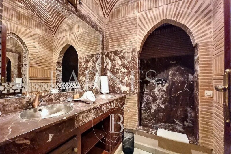 Located in a charming neighborhood of the Medina, this renowned guesthouse with 18 rooms and suites consists of three communicating riads, a terrace with a pool and waterfall, an elevator, a restaurant, and a spa. Decorated in a typical Moroccan style, it was built with respect for Moroccan architectural traditions. Exceptional referencing and superb profitability.