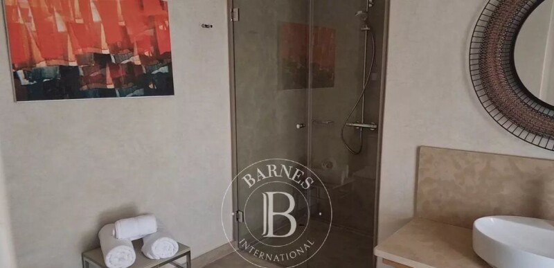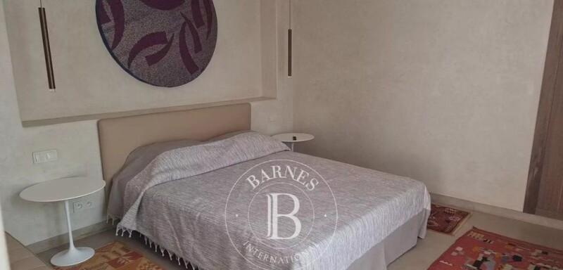 Superb guest house located in the oldest district of the Medina, 80 meters from the Ben Youssef Medersa, a UNESCO World Heritage site. This riad, with a contemporary style influenced by Moorish architecture, has been demolished and completely rebuilt with reinforced concrete foundations and structure in compliance with seismic regulations. The wall blocks are made of terracotta, providing excellent bioclimatic and insulating performance for both summer and winter climates. The flat roof terrace is insulated with cork panels to improve thermal insulation. The Riad features: Photovoltaic system for electricity production Solar-thermal system for hot water production Intrusion detection system with motion sensors and surveillance cameras Heated swimming pool The sanitary fittings and faucets are of excellent quality and made in Germany. The materials used are typically Moroccan and natural: The tadelakt follows the original formula without synthetic colorants, created with smooth, waxed finishes for the interior and textured for the exterior. Taza stone, with the warm colors of the Atlas Mountains, was chosen as the most typical and representative of southern Morocco for all floors. The woods used for the doors, wardrobes, and bathroom furniture are Lebanese cedar and walnut, without synthetic chemical paints. Original Moroccan rugs have been carefully selected, all of them being historical. The modern lighting design is carefully crafted to highlight the architectural volumes, seeking the perfect balance between light and shadow. Sculptures and paintings were created by well-established artists from Marrakech in collaboration with the architect-designer of the riad. It is worth noting that the sculpture on the wall facing the pool reads: 'Only with your heart can you touch the sky - Jalal al-Din Rumi, Persian poet 1200.' The guest house is sold fully furnished and equipped, with an operating permit."**.