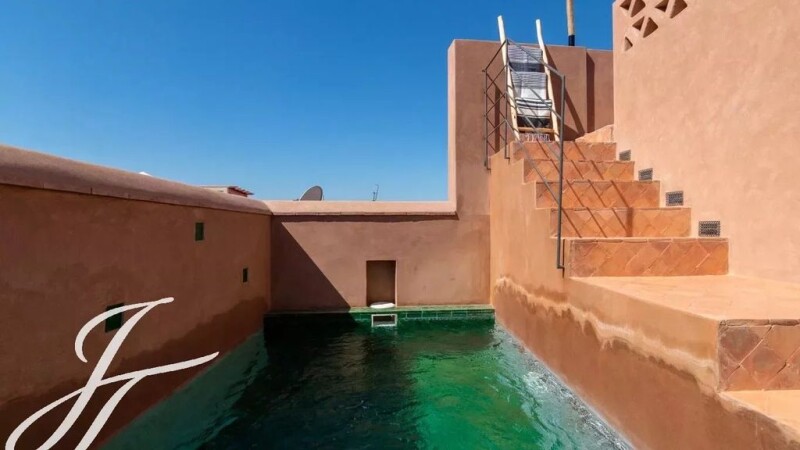 This property is enviably located in a central and sought after part of the UNESCO listed Medina of Marrakech. Renovated with unusually high quality and refinement standards, the Riad is a successful blend of design and tradition. Boasting a 77 sqm footprint, it comprises over 2 floors: a lounge with fireplace opening onto the courtayrd, a charming fitted kitchen as well as 3 ensuite bedrooms, one of which a master. The basement comes with a spa combing a hammam and a room for treatments. On the upper level, the roff-terrace hosts a solarium, a shaded dining, a pool (4mx3m) and an upper platform with panoramic views over the surround Medina and the Atlas mountains. This quality titled property is being sold furnished.