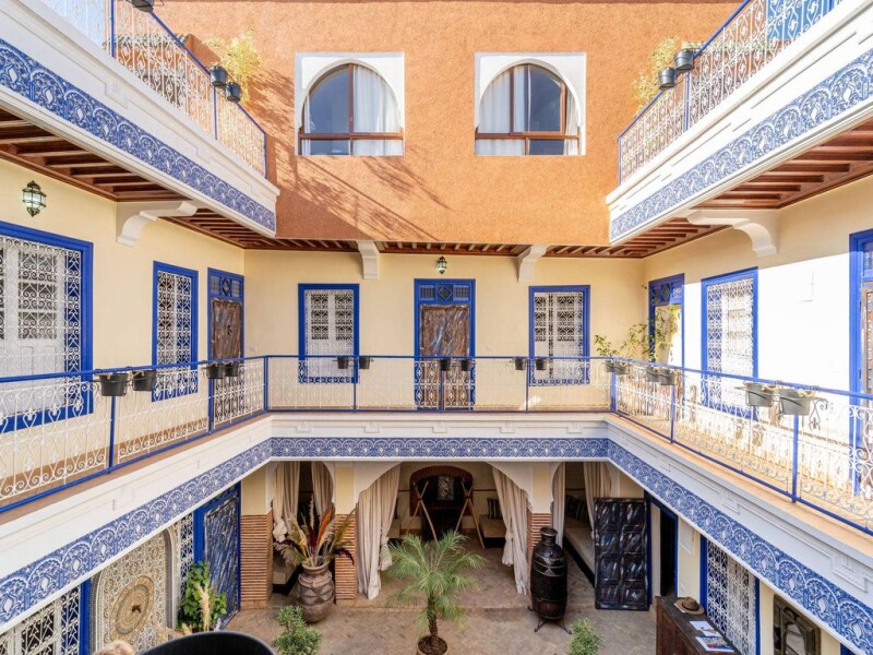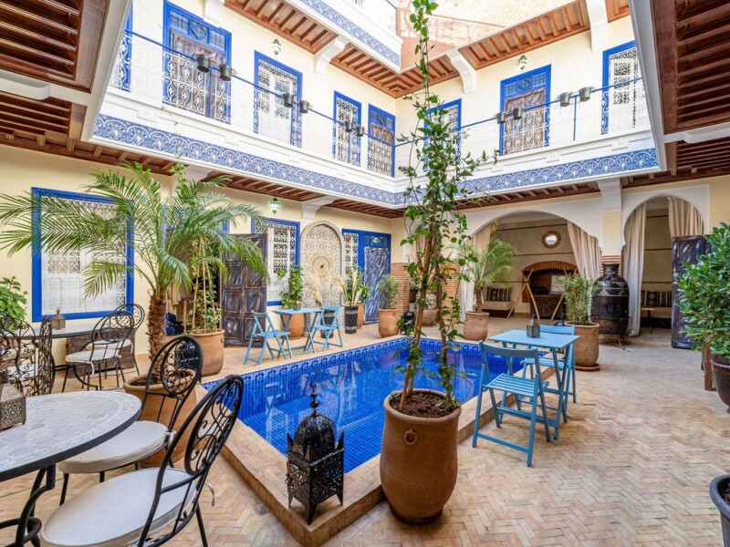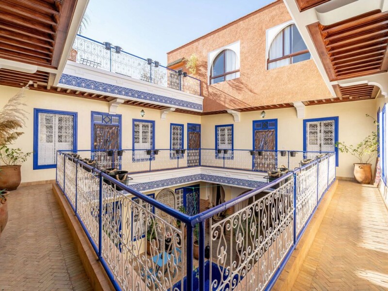 Located in the exclusive Sidi Mimoun district, this riad has a floor area of 150 m² and 9 bedrooms. The riad is decorated in an unusual, modern style. Arranged on two levels around a vast patio with swimming pool and several relaxation areas, the whole is very bright. The ground floor features a swimming pool, two bedrooms and a number of relaxation areas. The modern, well-equipped kitchen is directly accessible. On the first floor, the passageway leads to five spacious, tastefully decorated bedrooms. Each bedroom has its own bathroom. The terrace serves two bedrooms and offers beautiful views over the rooftops of the medina and the Atlas mountains. With car access and parking very close by, this enhances the property's tourist potential. Added to this, its proximity to numerous emblematic monuments of the Marrakesh Medina makes it a great opportunity for a guest house or other project. Others : Well-titled, sought-after district, strategic location, very close to Jemaa El Fna square. Filled with history, the Sidi Mimoun district is just 5 minutes from the famous Jemaa El Fna square. For more information, please contact Abdelhadi Laaouina on +212 6 61 07 49 33.