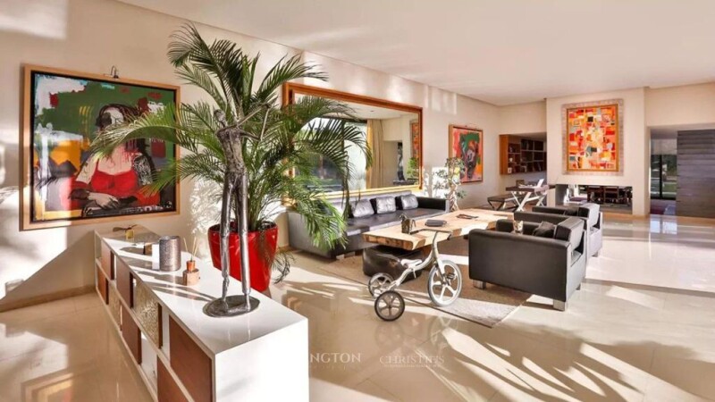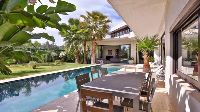 The magnificent, contemporary Villa Basmaa, built on a fully landscaped, unoverlooked 1000 sqm corner plot, is for sale in the famous Amelkis residence. The villa enjoys a southern exposure with a breathtaking view of the Atlas peaks. This modern villa offers 600 m² of living space, including a splendid 100 sqm reception room with lounge, dining room and study, five bedrooms with bathrooms and dressing rooms, a superb fully equipped kitchen, a hammam, a sublime swimming pool and a luxuriant garden full of trees. Built on two levels, the villa Basmaa, with its ingenious proportions, modern design and tranquil outdoor setting, is a rare jewel... yours for the taking. For more information on this property or to arrange a viewing, please do not hesitate to contact us.