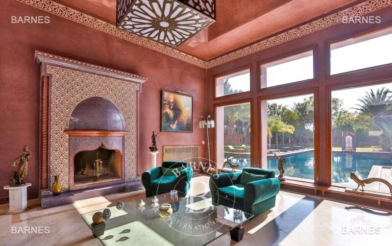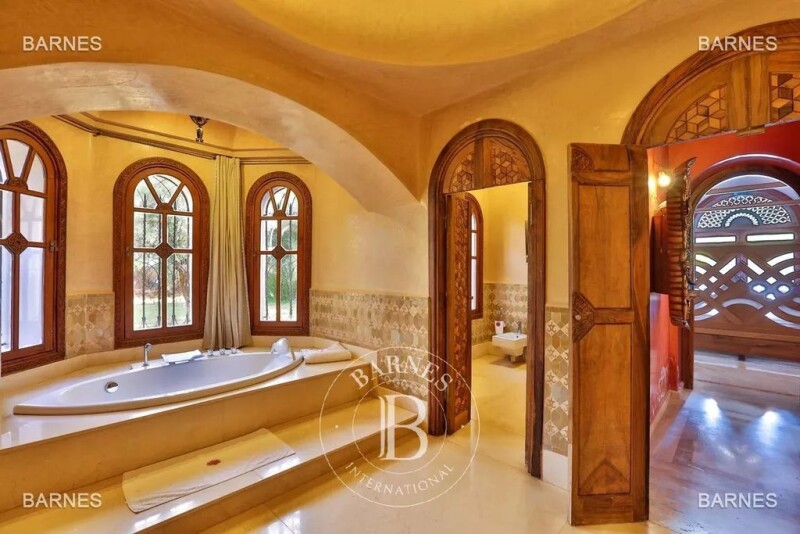 Exceptional property in the palm grove , field 10.000 1500m² habitable, an ancient and lush grounds . 7m pus ceilings for receptions, several receptions , dining room with fireplace overlooking a very large kitchen. marble floor and zeliige , all beautifully crafted walnut woodwork . central heating, ducted air conditioning, hamam room. all suites are generously proportioned and bathrooms finely travaillés.perrotta great palemraie.